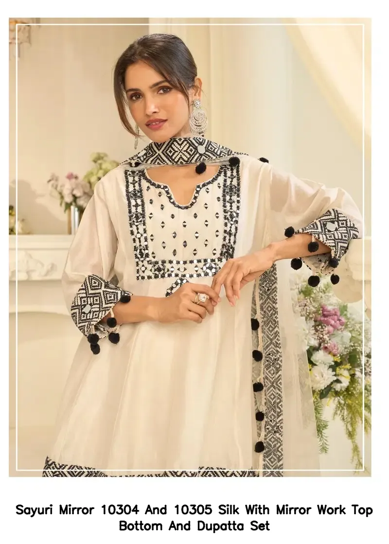 Sayuri Mirror 10304 And 10305 Silk With Mirror Work Top Bottom And Dupatta Set