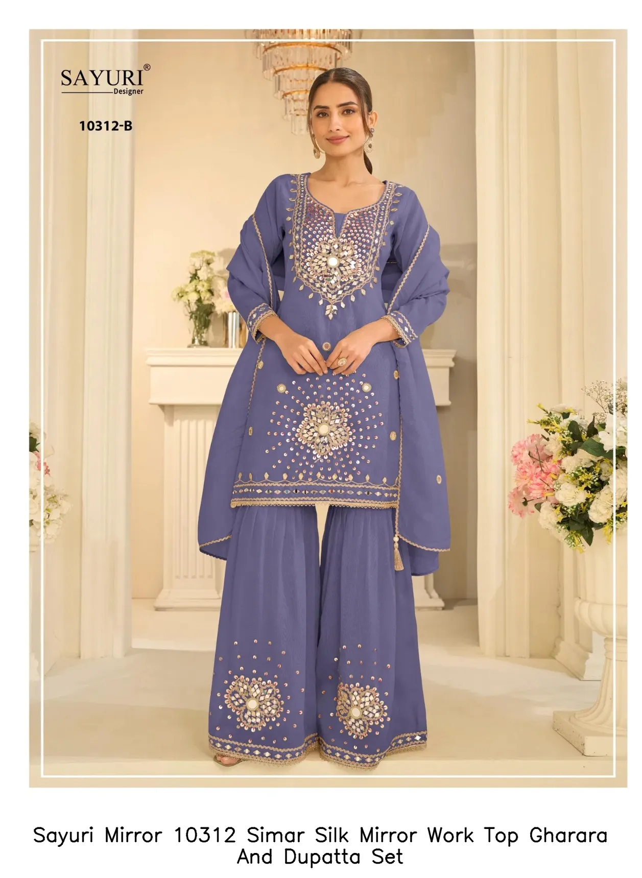 Sayuri Mirror 10312 Simar Silk Mirror Work Top Gharara And Dupatta Set
