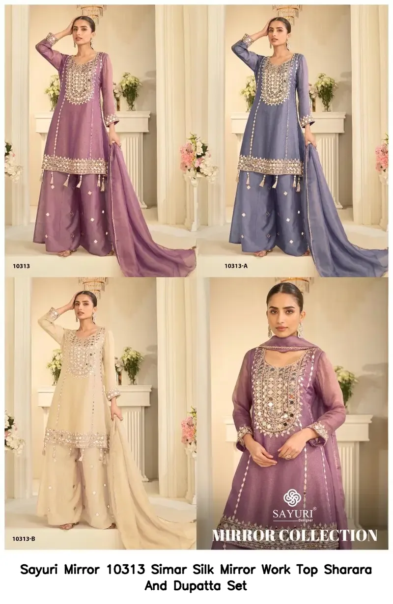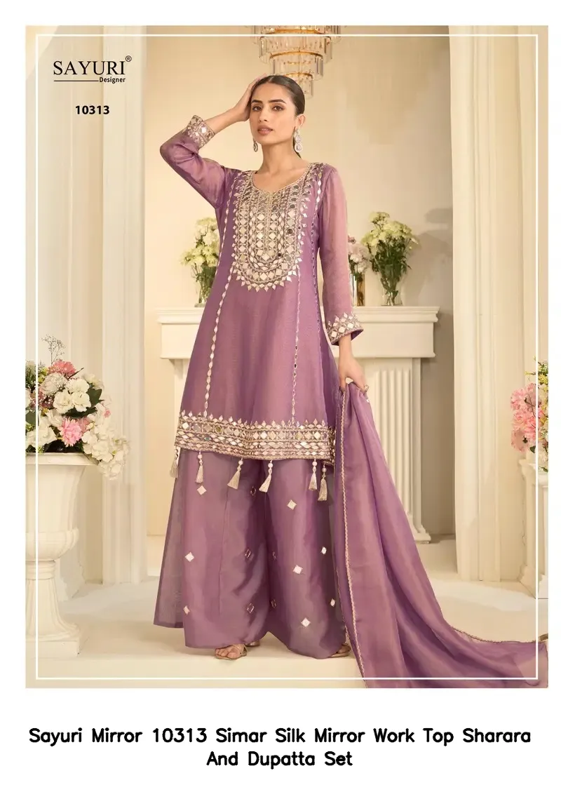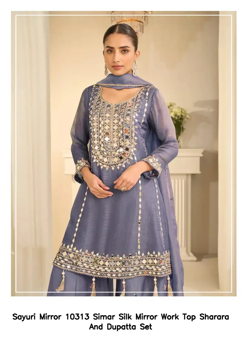 Sayuri Mirror 10313 Simar Silk Mirror Work Top Sharara And Dupatta Set