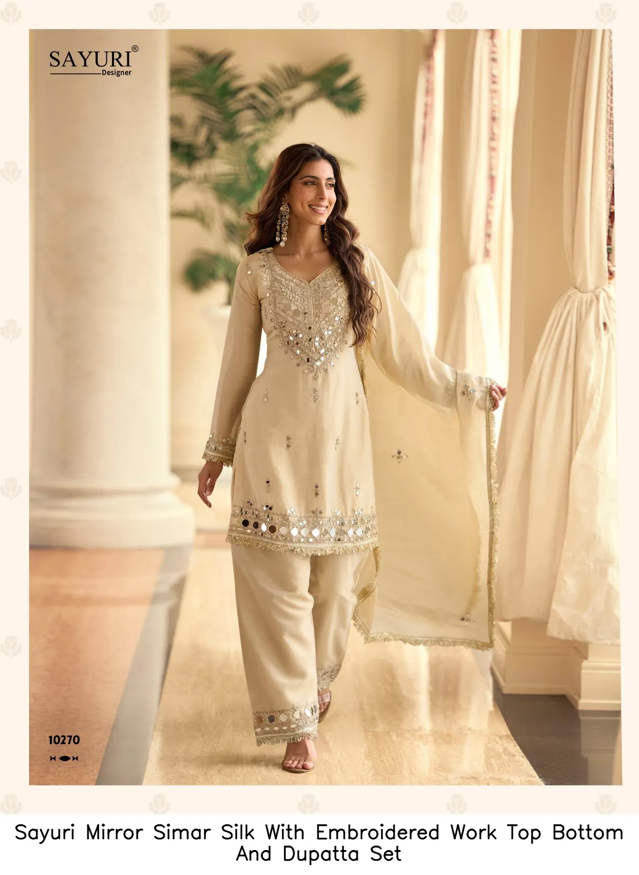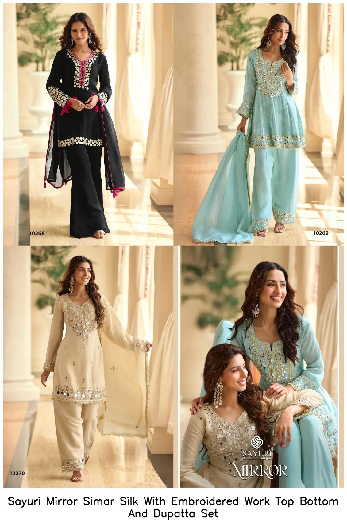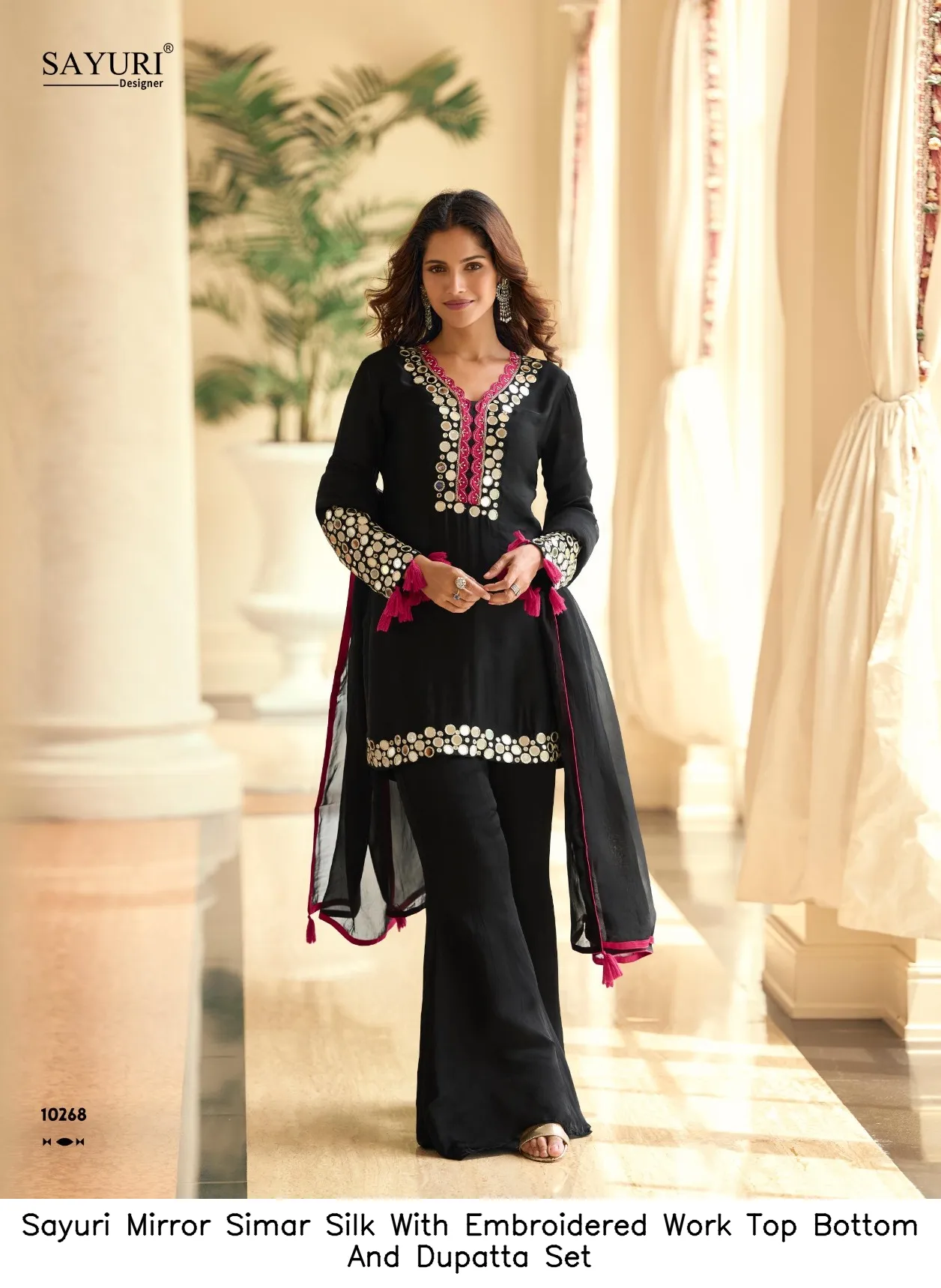 Sayuri Mirror Simar Silk With Embroidered Work Top Bottom And Dupatta Set