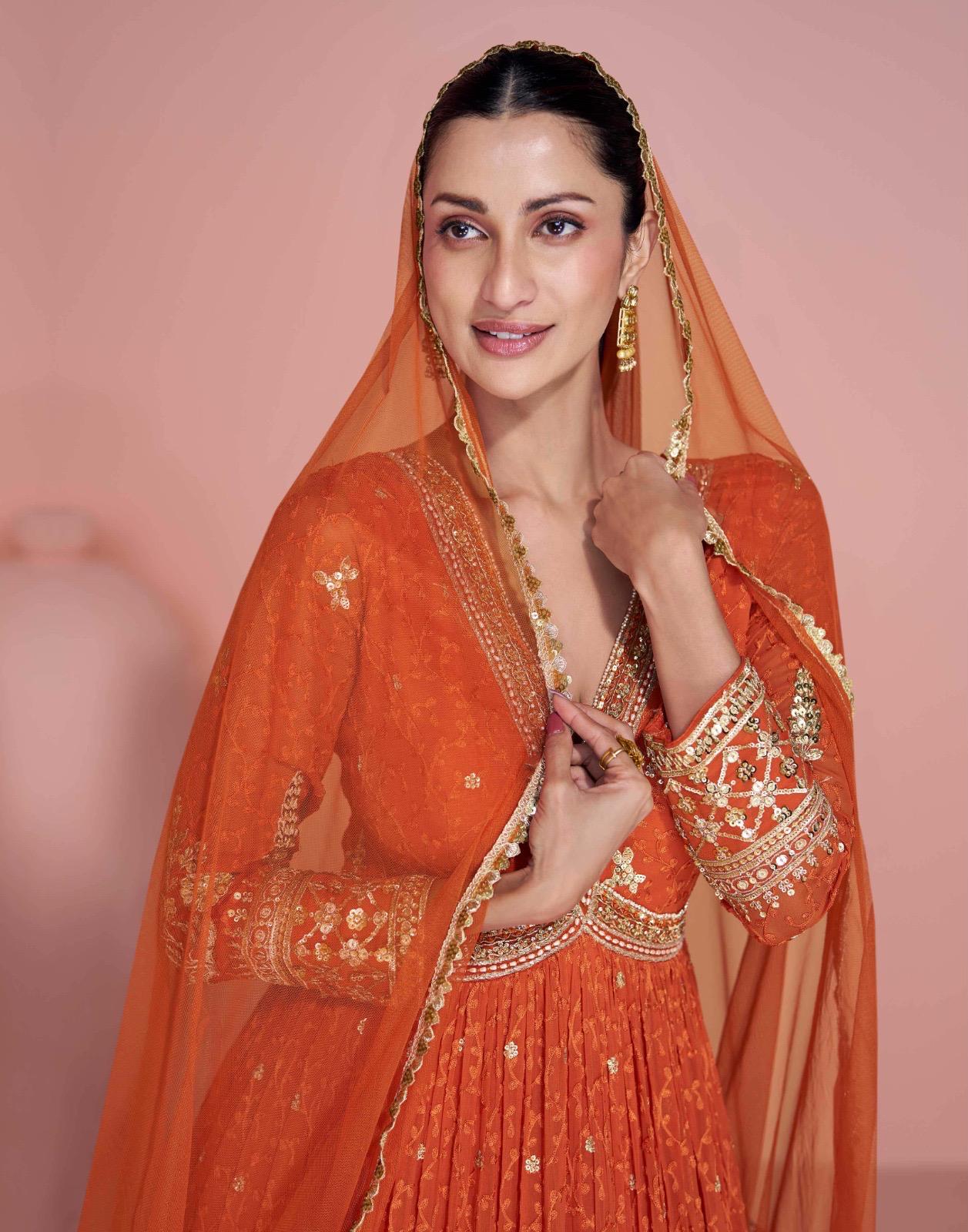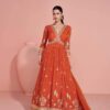 Work: Trendy Festive Look with Front & Back Embroidery on Gown and Dupatta