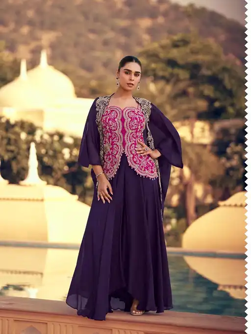 Sayuri Panihari 5765 Wholesale Real Chinon Silk Indo Western Catalog.