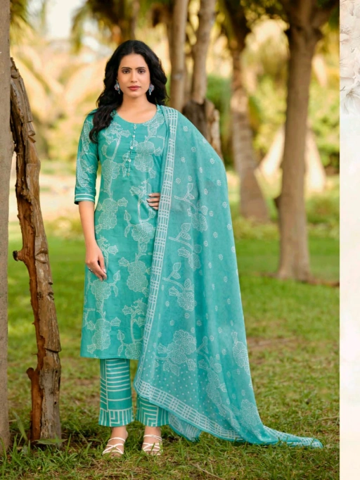 Buy SBS Modethnic Fashion Aarvika 3-piece cotton suit sets with mal cotton dupatta at the best wholesale price.