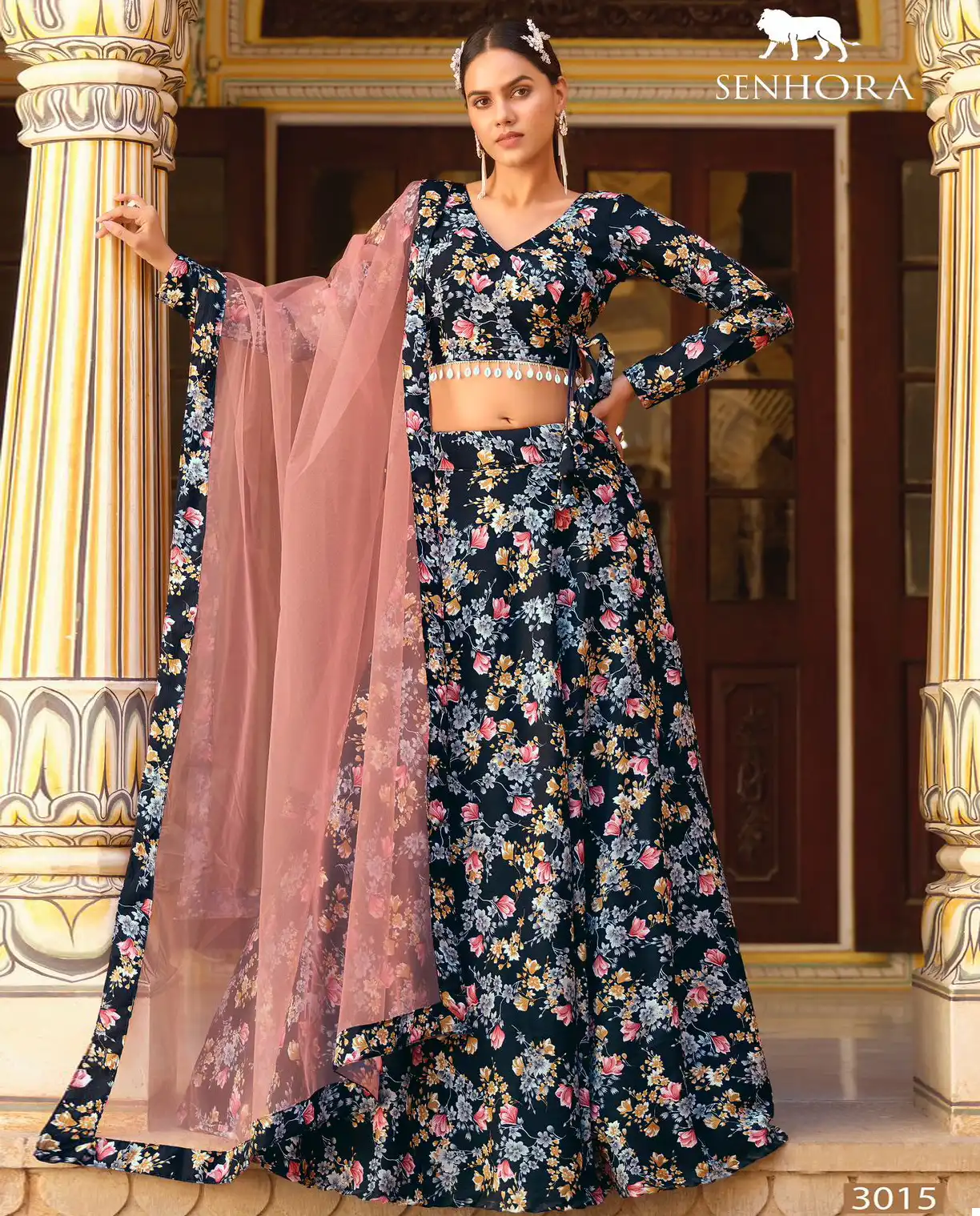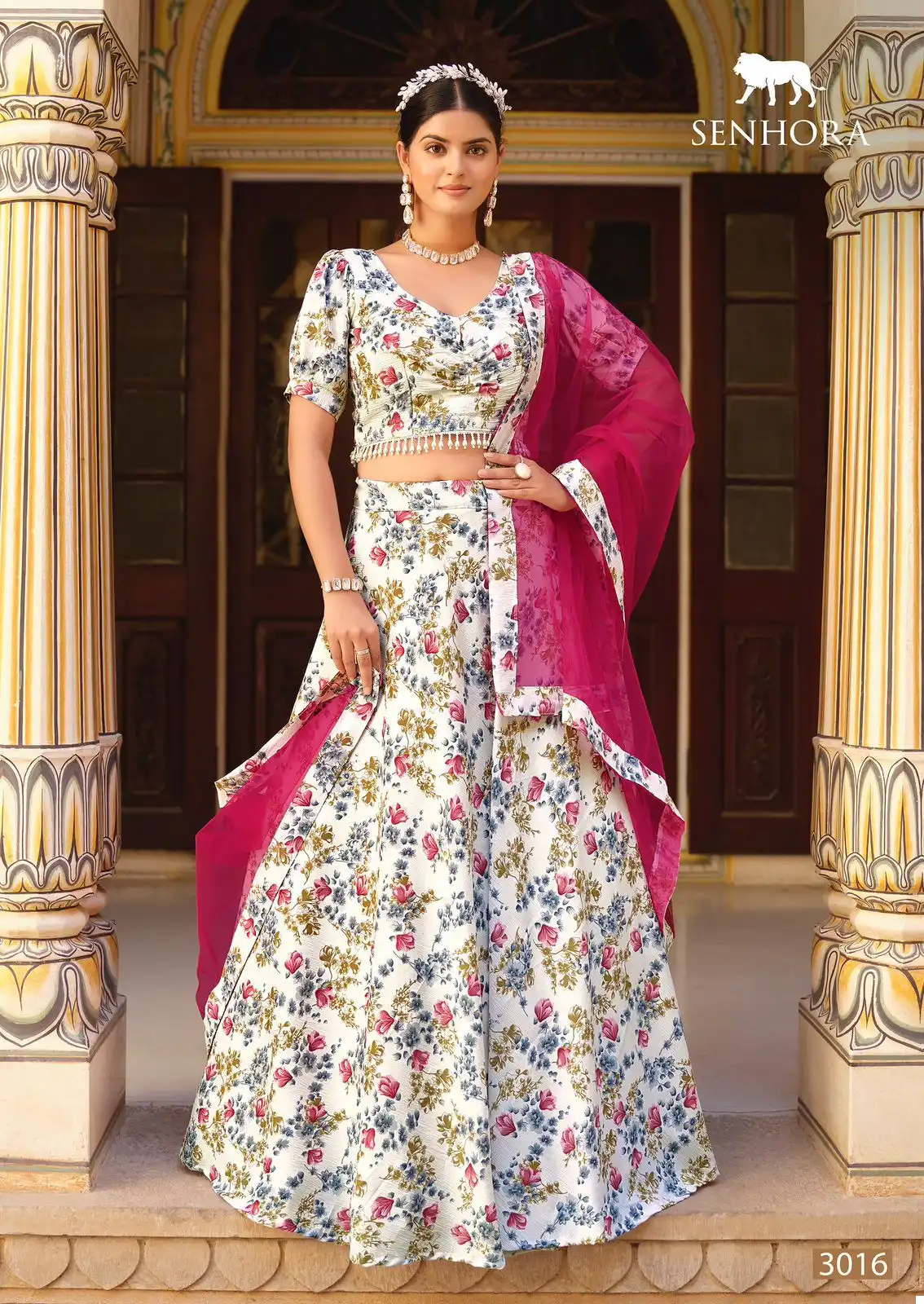 Lehenga: Our Finest Crushed Silk Lehenga is a masterpiece of elegance. Crafted from high-quality crushed silk fabric, it features a captivating floral print that adds a touch of vibrancy to your outfit. The lehenga is semi-stitched, with a waist size of 44 inches, providing comfort and ease of wear. The design blends tradition with modernity, ensuring you look stunning and timeless.