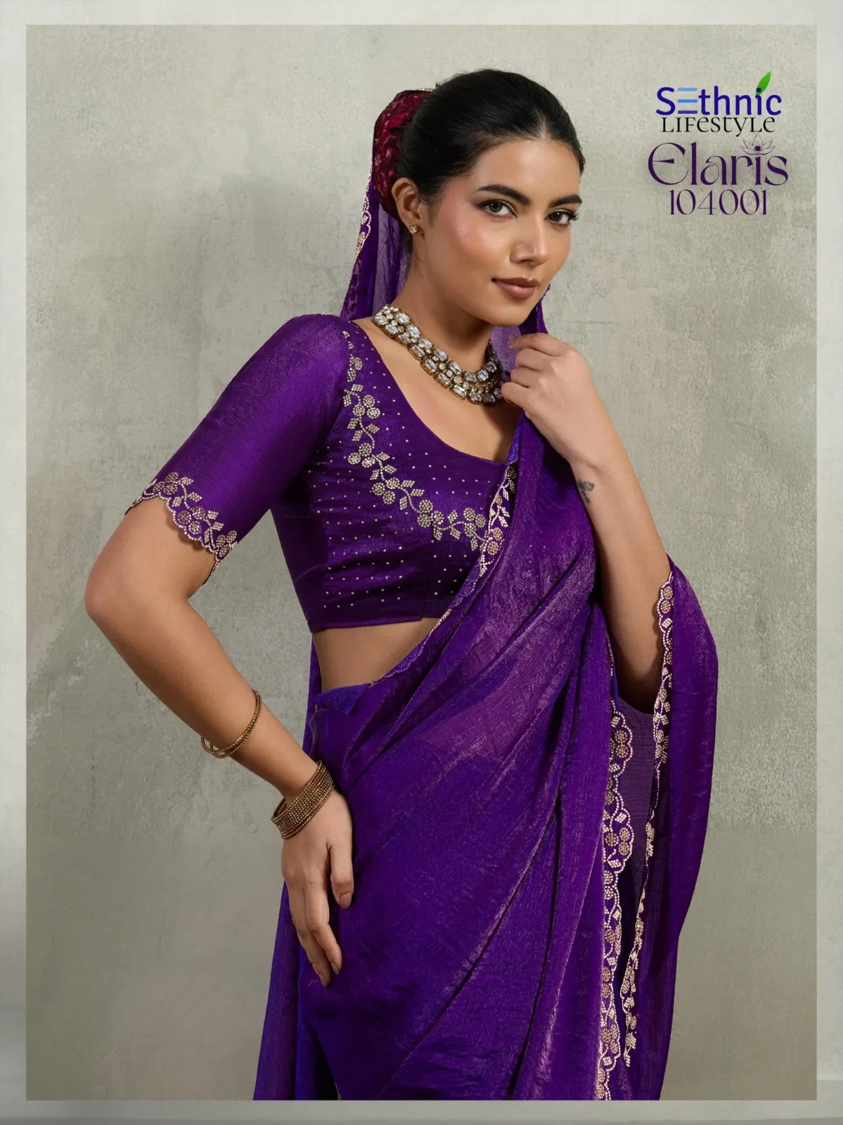 Sethnic Elaris Velvet Chiffon Designer Party Wear Saree Catalog