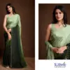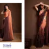 | Saree | Two Tone Shaded Chinnon Golden Swarovski Border Design with Original Mirror Work, C Pallu, Cut-work |