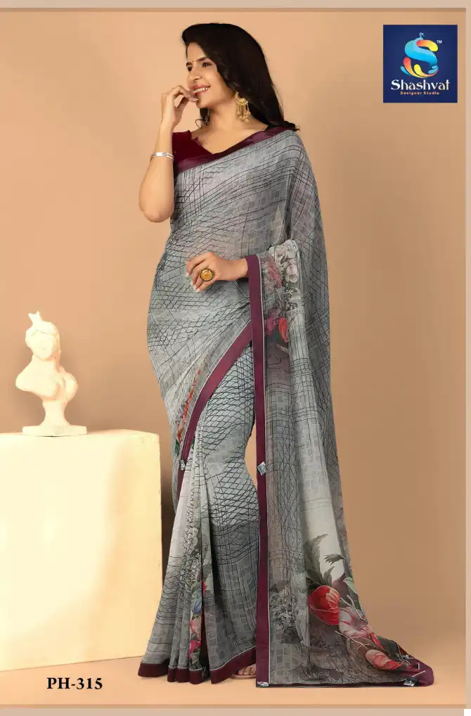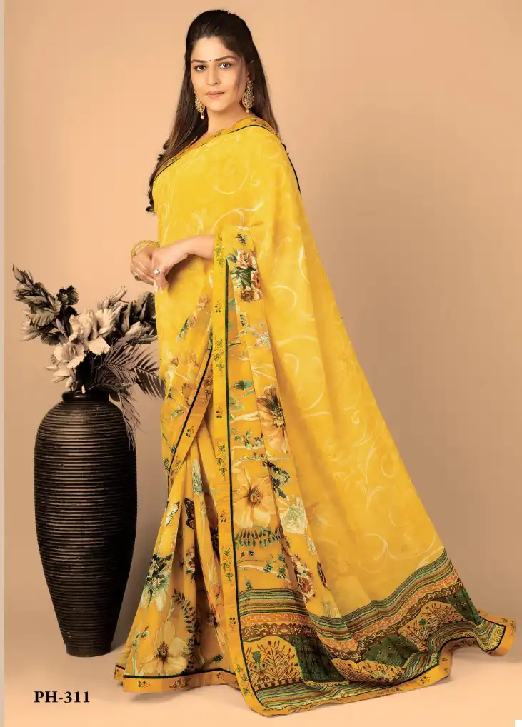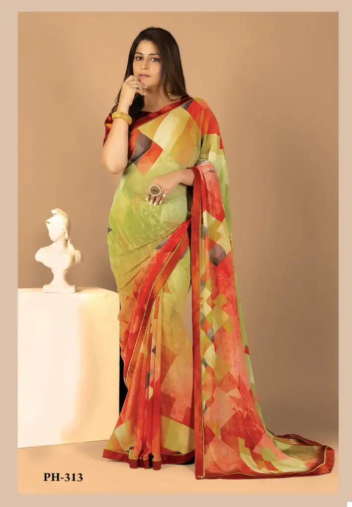 - Saree: Bamber Silk with Digital Print featuring Different Types of Exclusive Fancy Borders