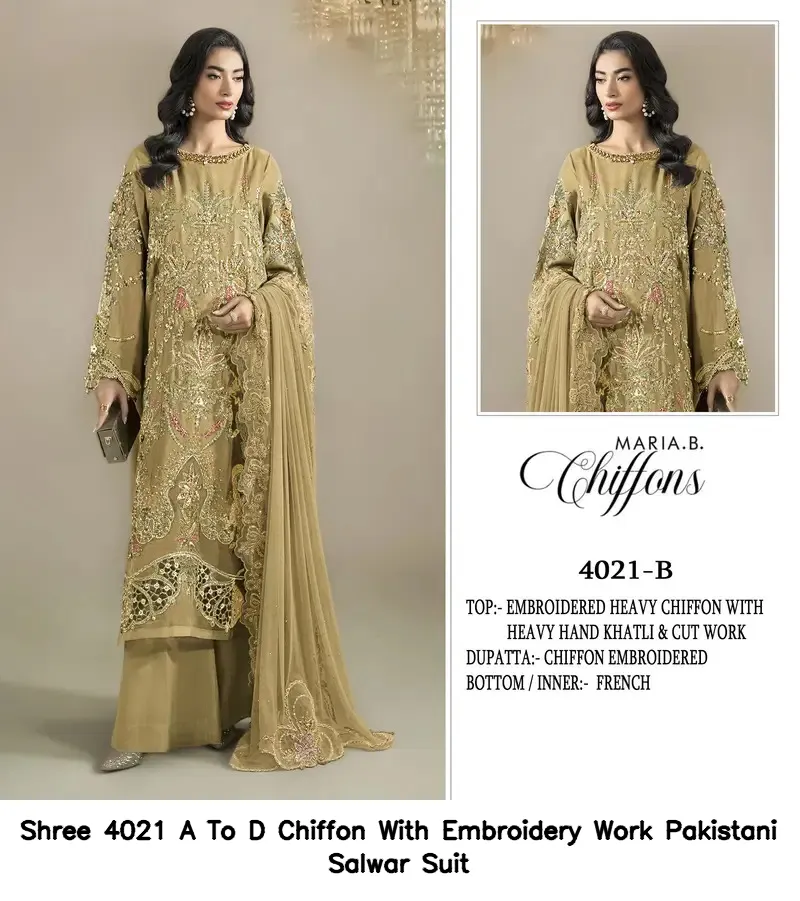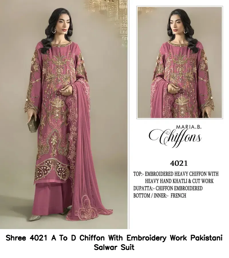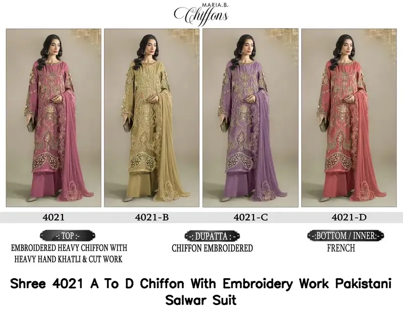Shree 4021 A To D Chiffon With Embroidery Work Pakistani Salwar Suit