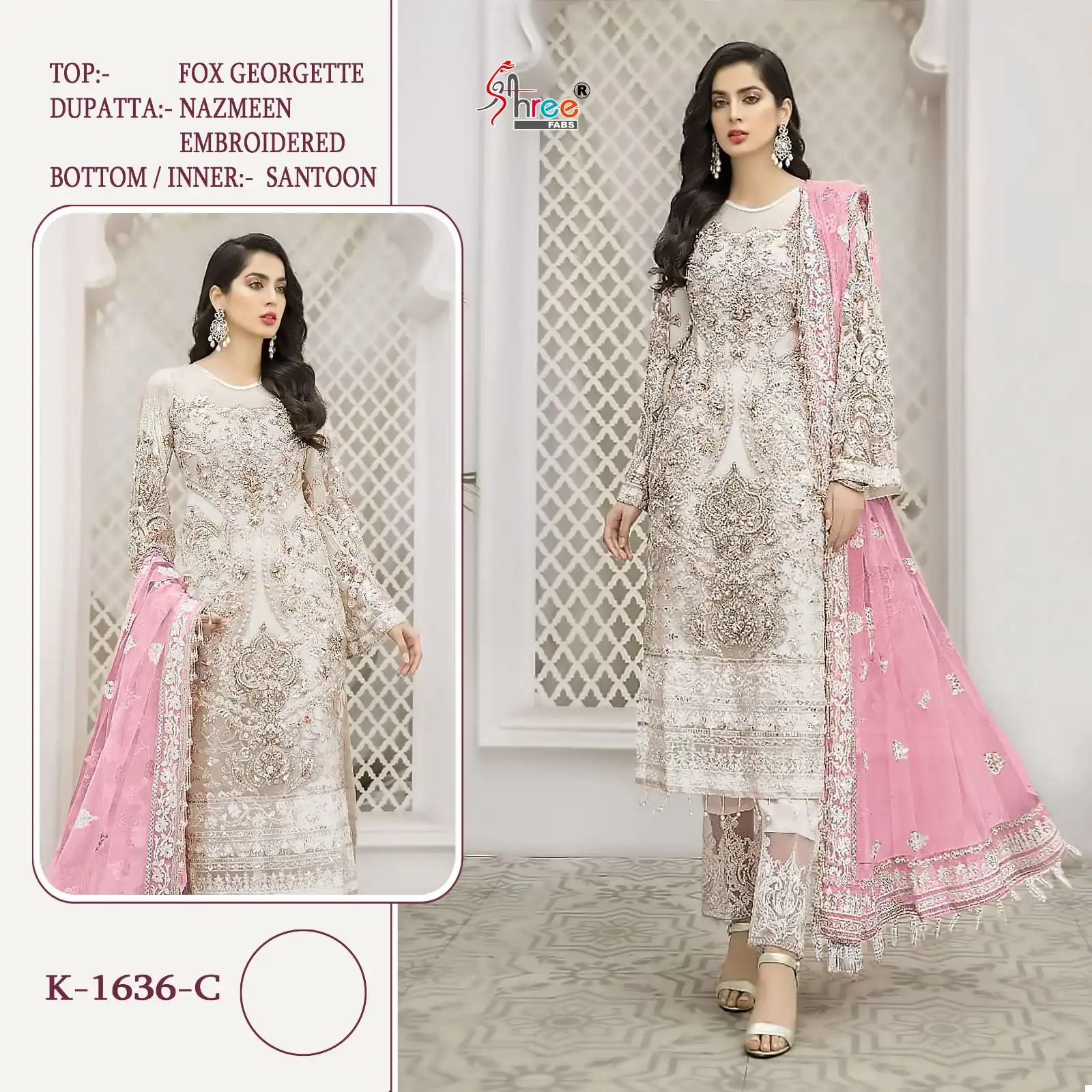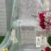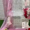 The outfit is completed with a dupatta crafted from net fabric, elegantly embroidered to match the top. The net material adds a touch of sophistication and provides a sheer, lightweight layer that enhances the outfit’s aesthetic appeal without overpowering it.