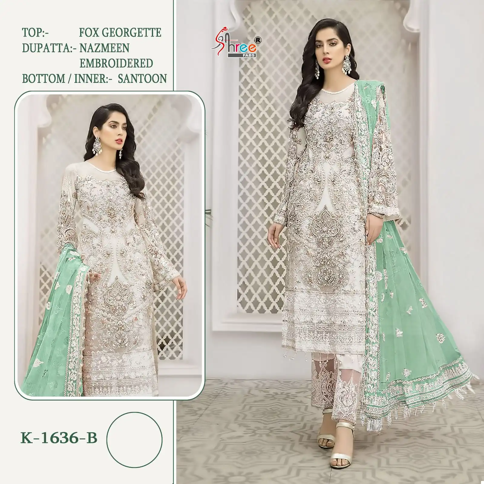 Paired with the top is the bottom made of dull Santoon, which is highly appreciated for its smooth, lustrous finish and comfortable wear. The understated elegance of the Santoon fabric complements the decorated georgette top, striking a perfect balance between grandeur and simplicity.