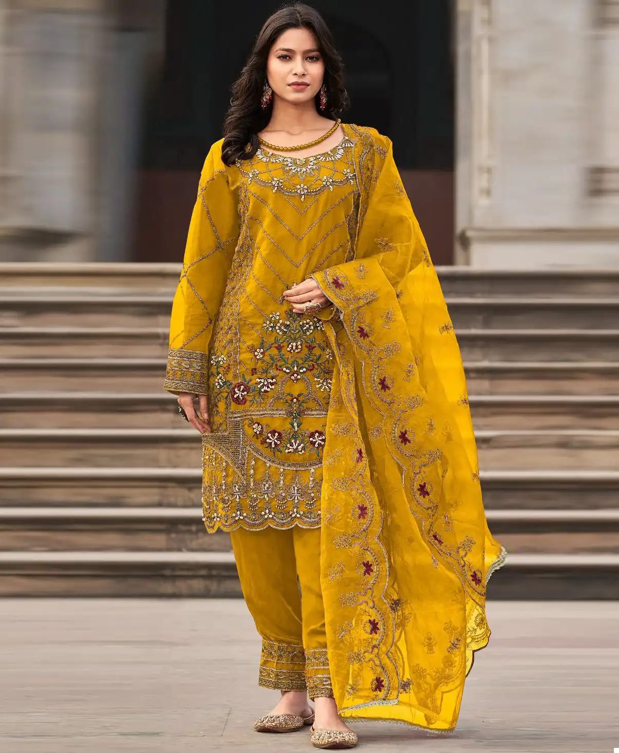 - Dupatta: Complete your ensemble with our beautifully embroidered Net dupatta, exuding charm and elegance. The intricate embroidery work adds a touch of glamour to the ensemble, making it a standout accessory for any event.