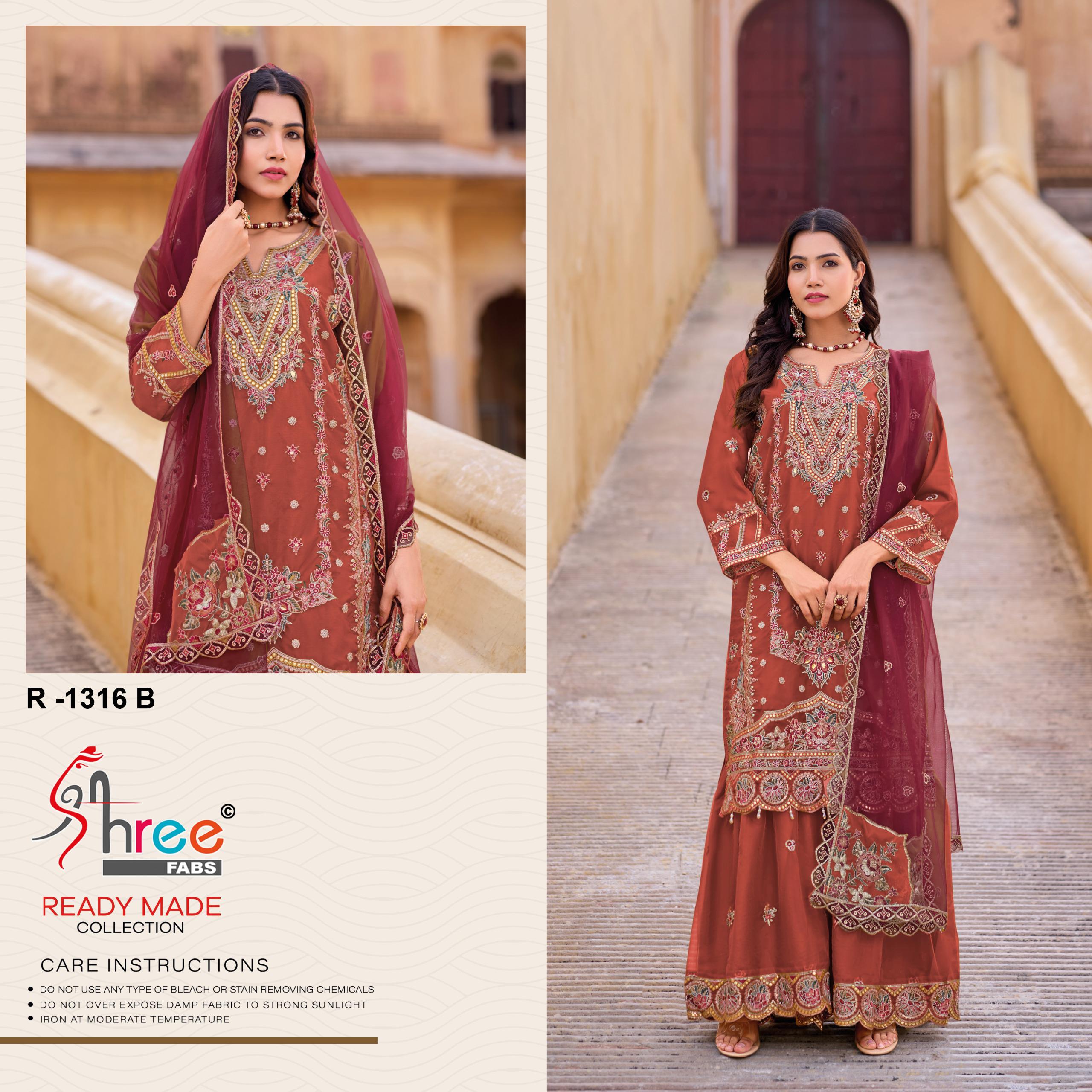 Shree Fab R 1316 Organza Wholesale Readymade Salwar Suit Collection