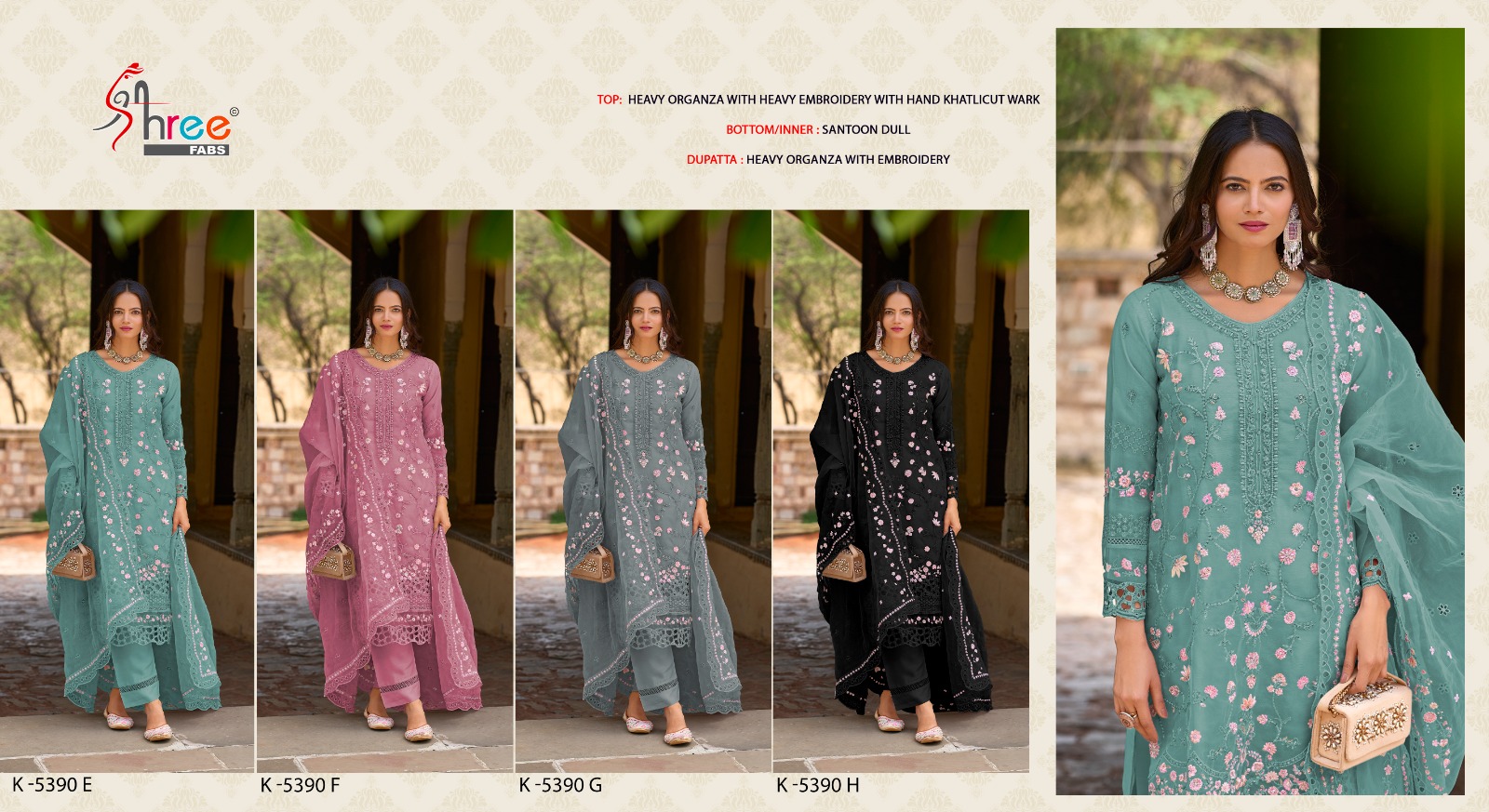 ✨ Shree Fabs presents Shree K 5390 E to H, a luxurious Pakistani-style designer collection crafted in premium organza fabric for an ethereal and elegant look. Designed for festive occasions, weddings, and special events, this collection features intricate embroidery and delicate detailing, ensuring a sophisticated appeal.