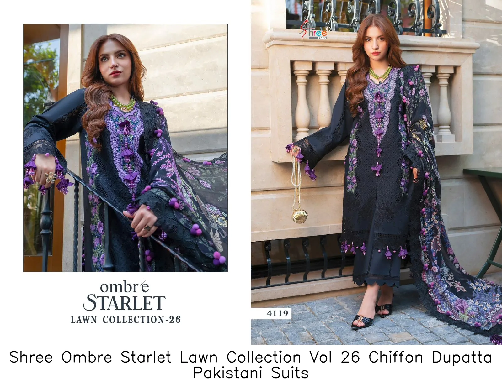 Shree Ombre Starlet Lawn Collection Vol 26 Chiffon Dupatta Pakistani Suits