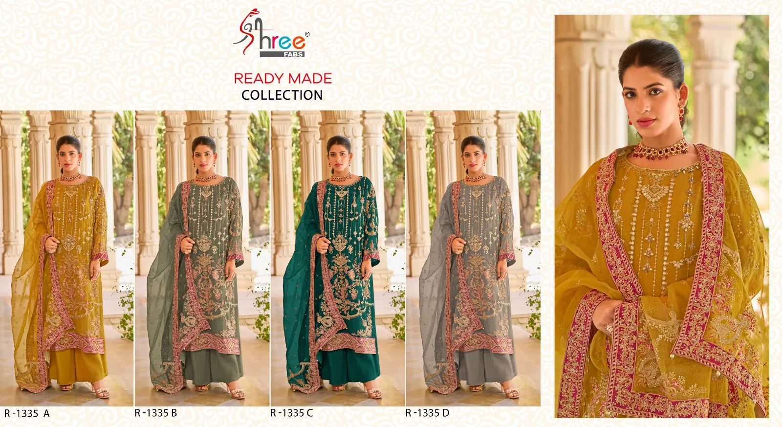 Shree R 1335 A To D Organza Wholesale Pakistani Salwar Suit Collection