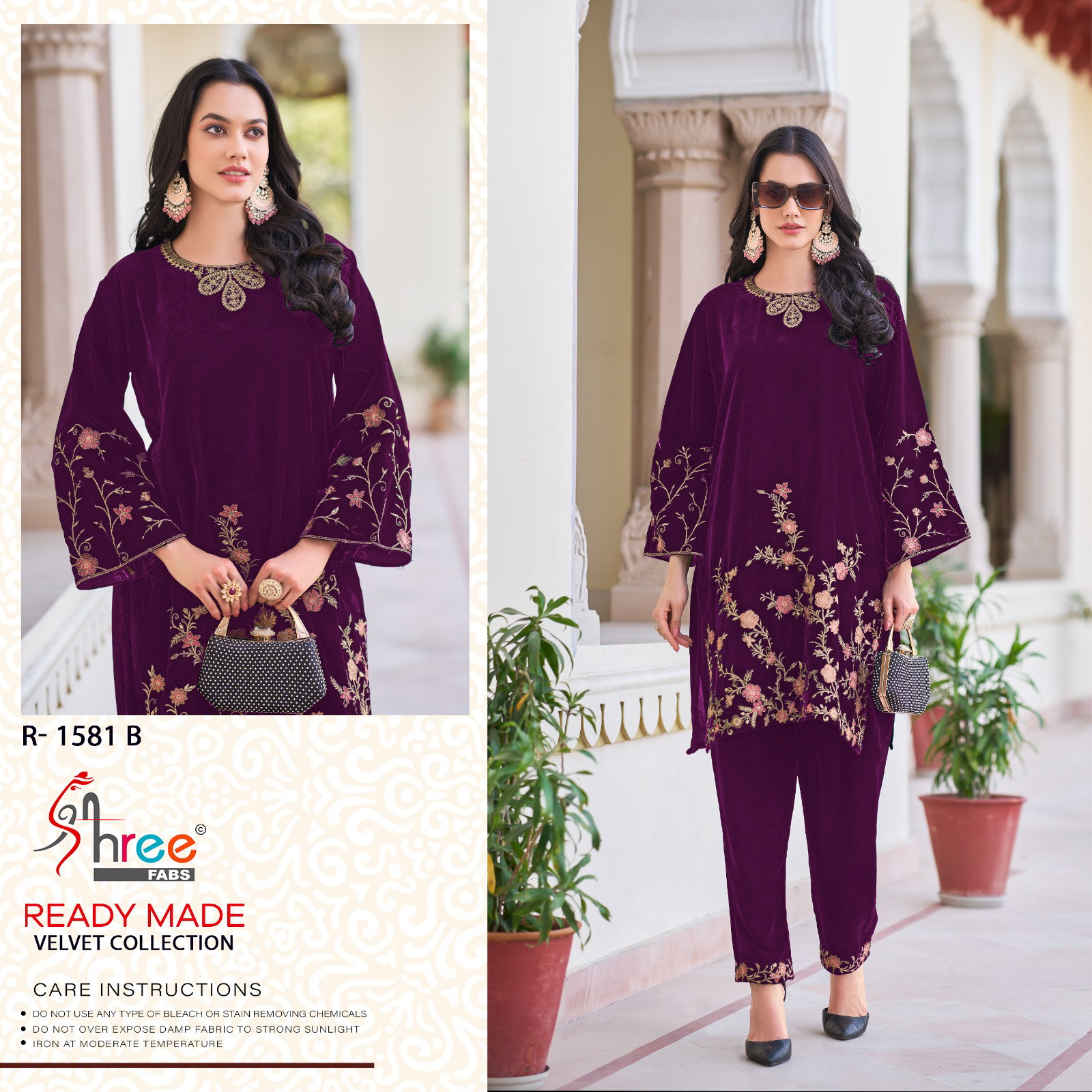 Shree R 1581 Wholesale Velvet Casual Wear Pakistani Co-Ord Set Collection.