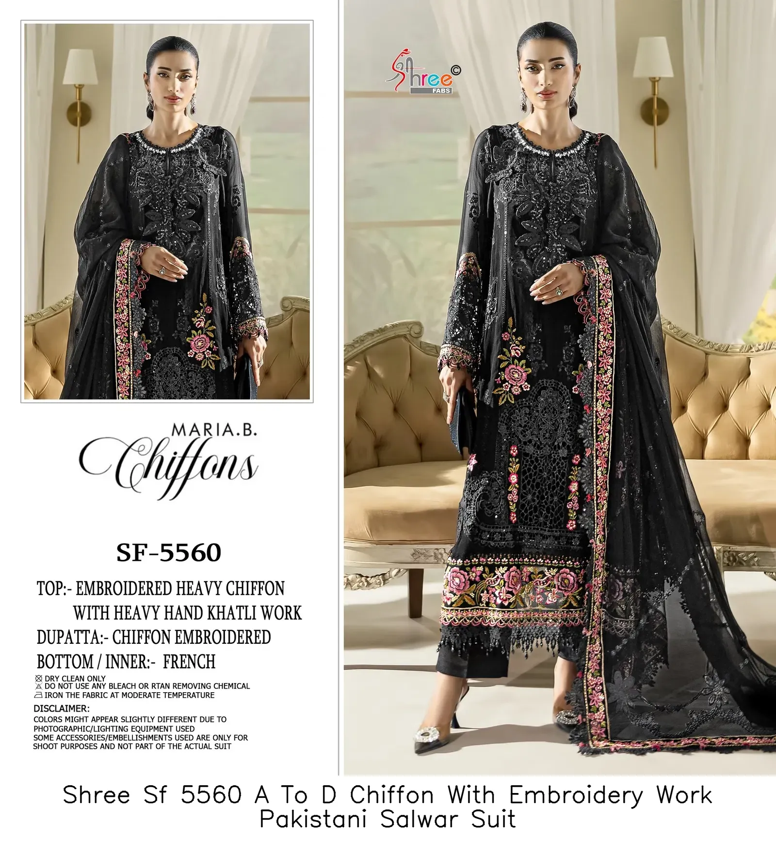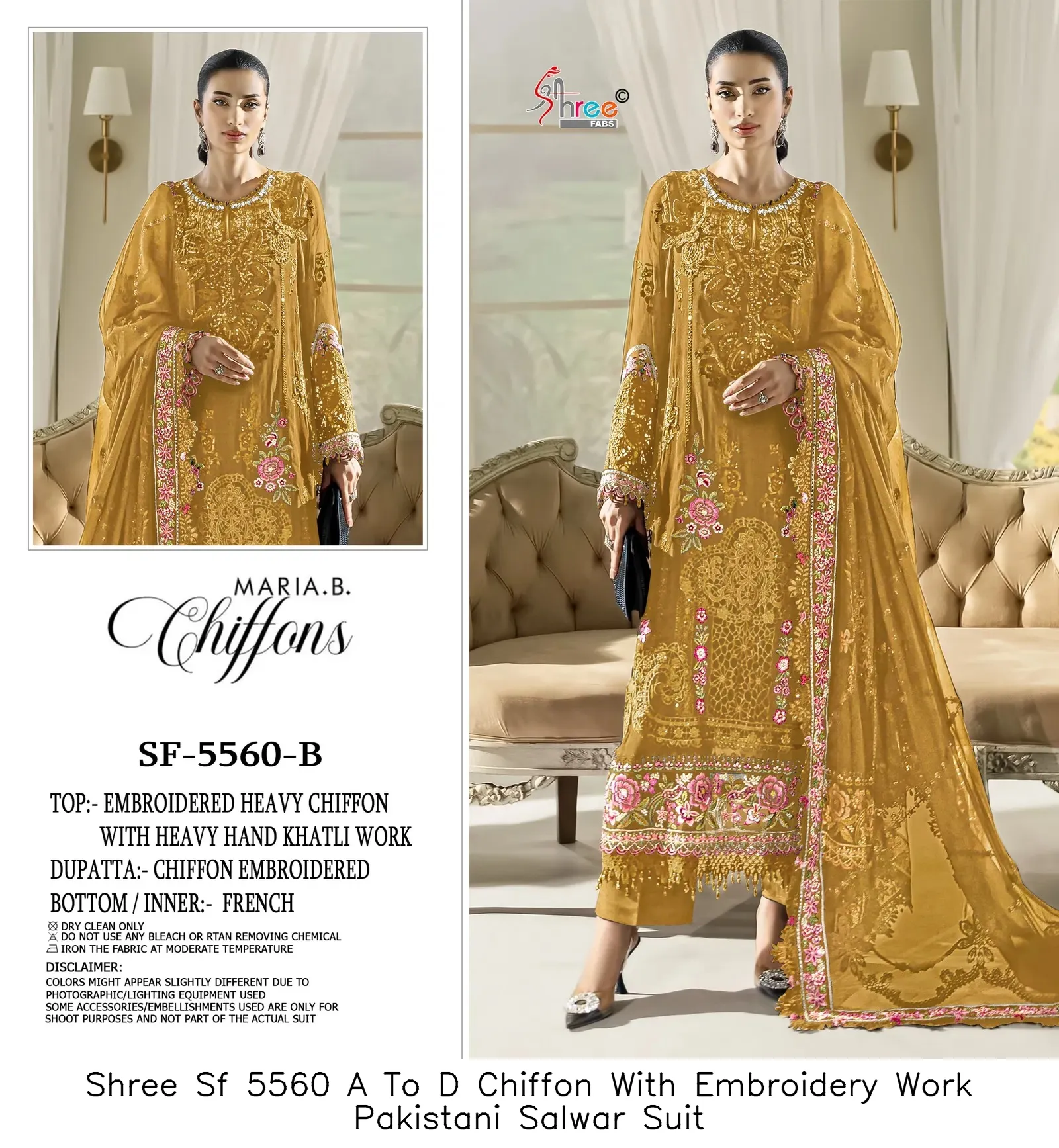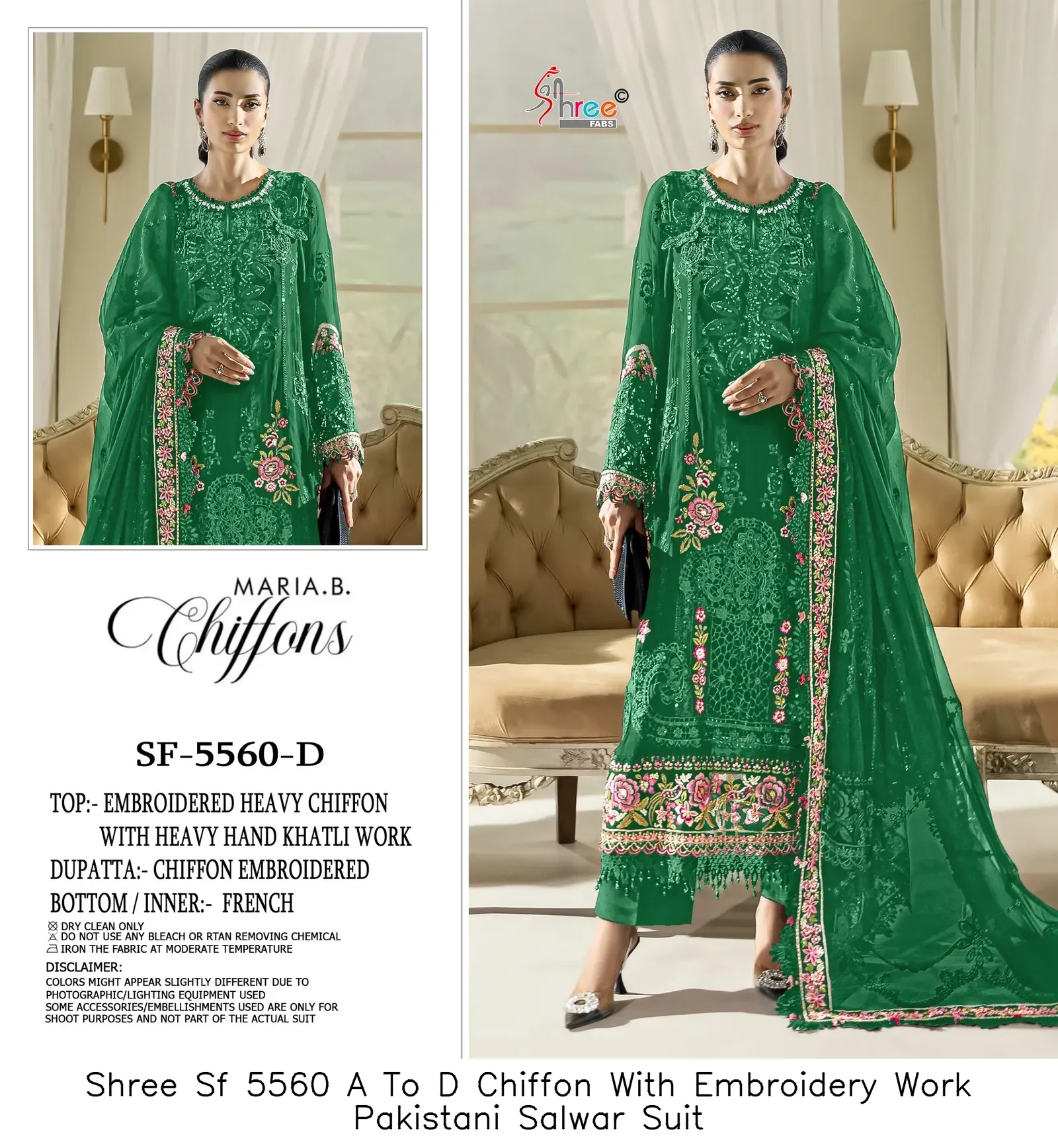 Shree Sf 5560 A To D Chiffon With Embroidery Work Pakistani Salwar Suit