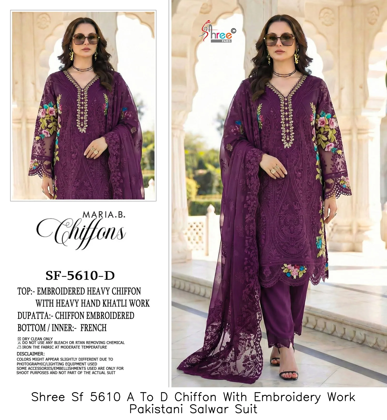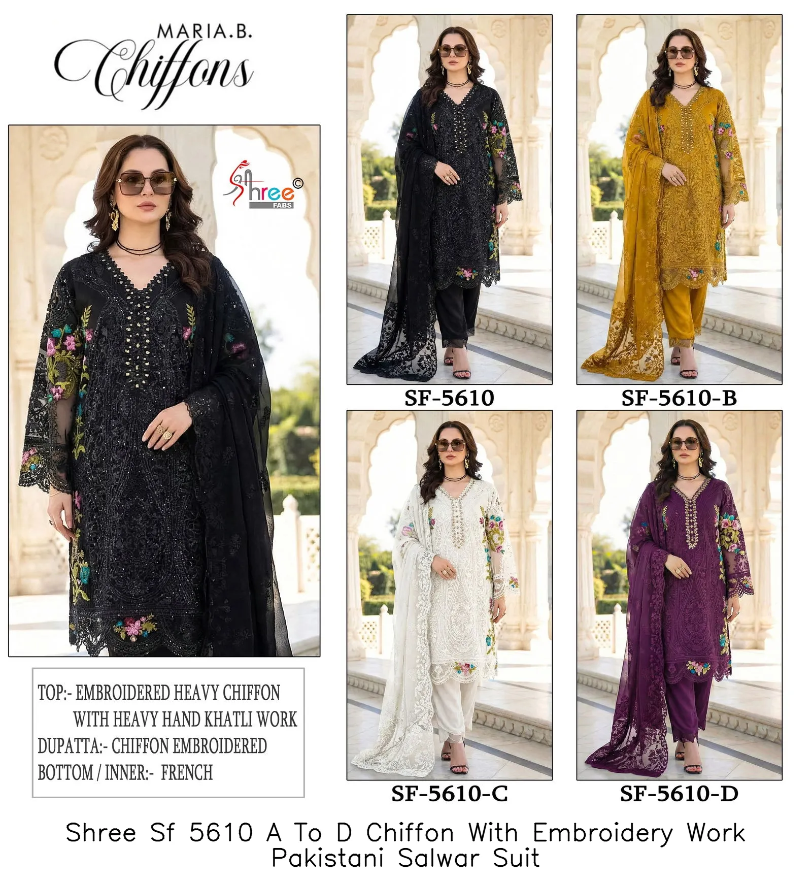 Shree Sf 5610 A To D Chiffon With Embroidery Work Pakistani Salwar Suit