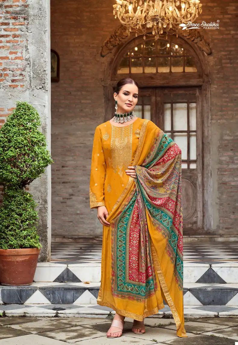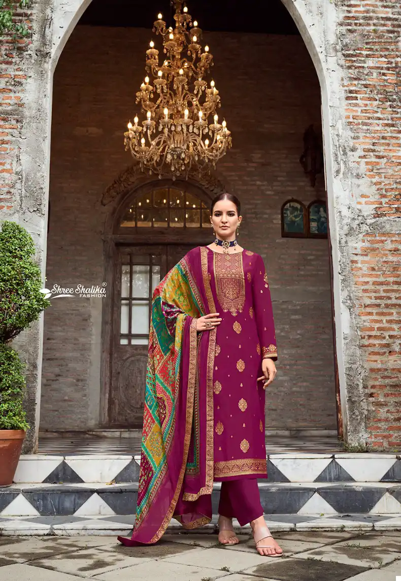 Elevate your ethnic fashion game with our “Pure Elegance” ensemble, a set of 8 beautifully crafted pieces that exude sophistication and style. From the pure viscose dola jacquard top to the pure jaan cotton bottom and the stunning arik silk dupatta, this ensemble is a celebration of rich textiles and intricate design.