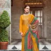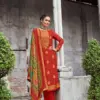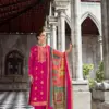 Top – Pure Viscose Dola Jacquard Dyed: The top in this ensemble is made from pure viscose dola jacquard, which has been meticulously dyed to create a stunning visual effect. The fabric’s unique texture and design make it a standout piece.