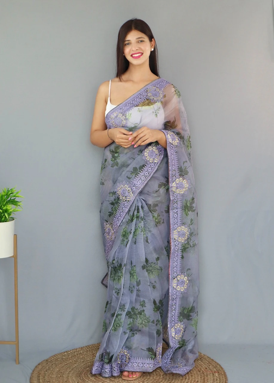 Embroidered and Digitally Printed Saree with Fancy Blouse