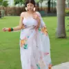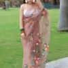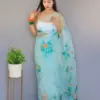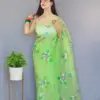 - Organza Fabric: Immerse yourself in the sheer opulence of organza, a fabric revered for its lightness, transparency, and delicate sheen. These sarees are crafted from premium organza, ensuring a graceful and ethereal drape that adds a touch of glamour to your ensemble.