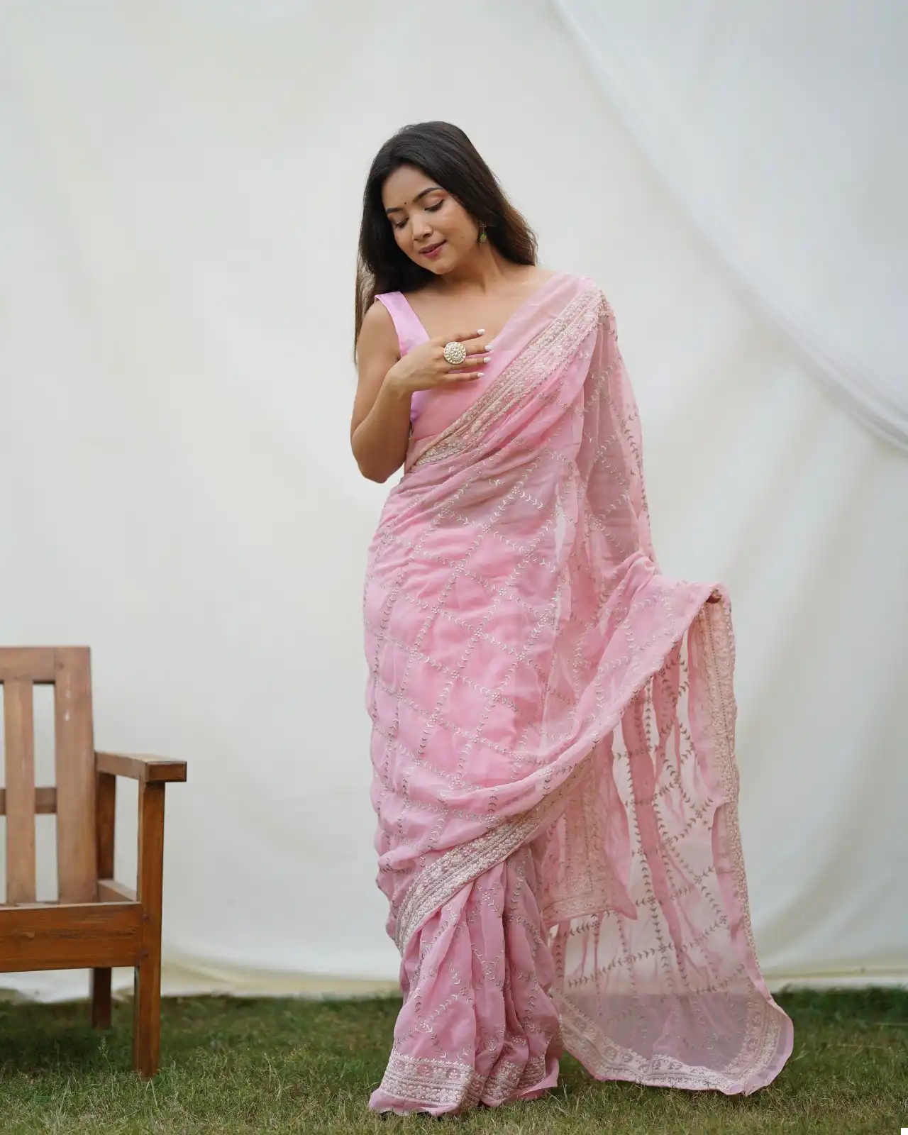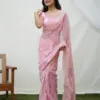 Georgette Embroidery Work And Piping Border