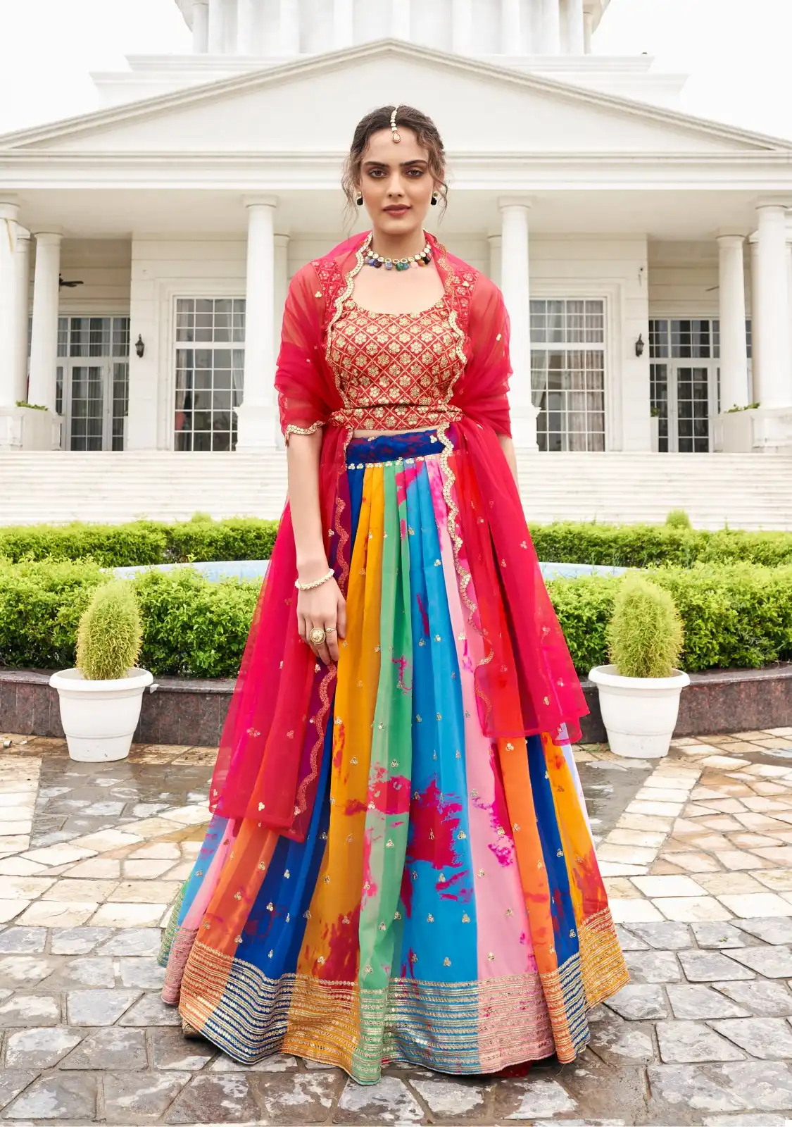 👗 Lehenga: Crafted from Pure Faux Georgette with stunning digital prints that add a modern flair to traditional elegance.