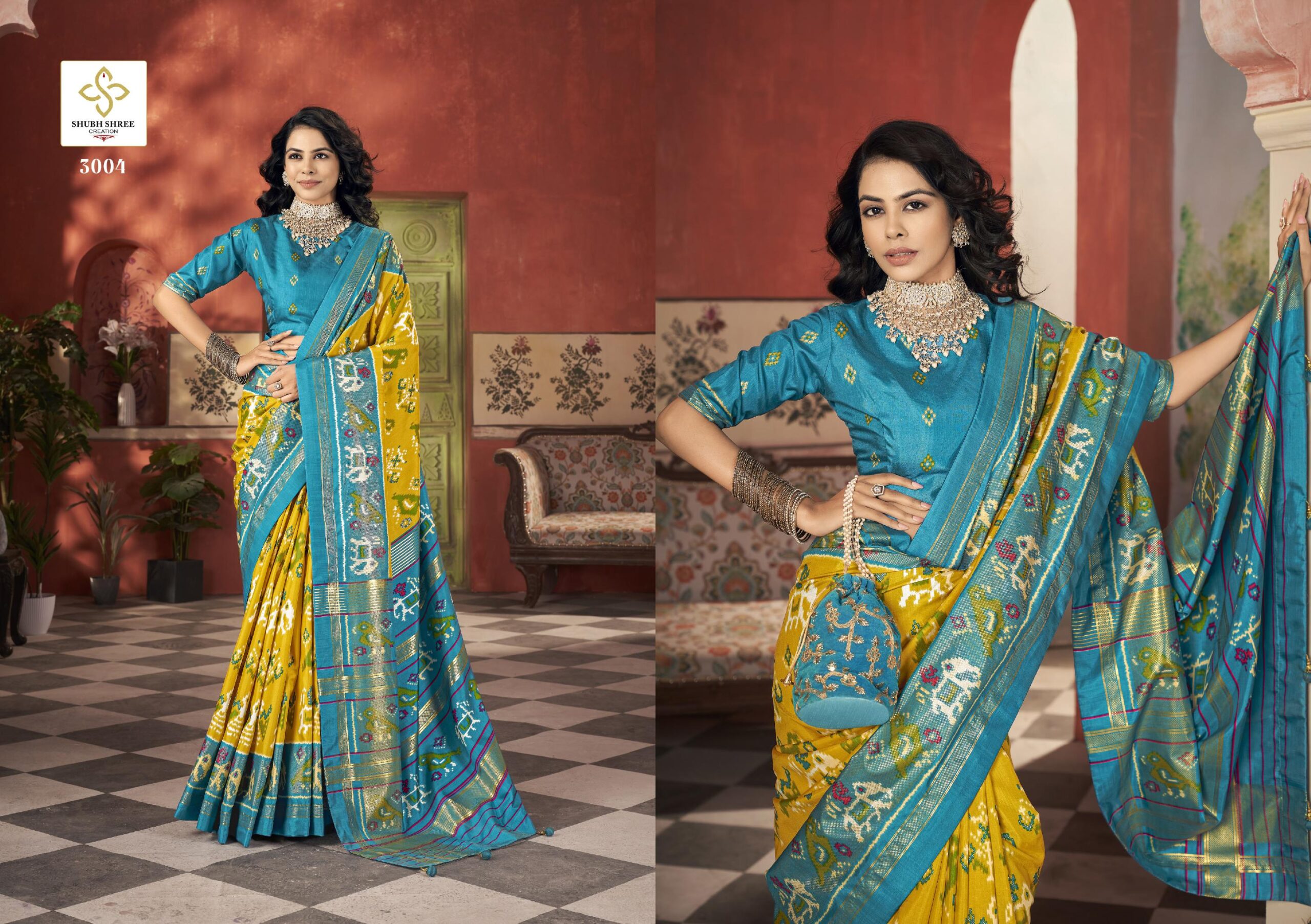 Shubh Shree Ikkat Silk 3 Velvet Tussar Silk Wholesale Fancy Sarees Catalog