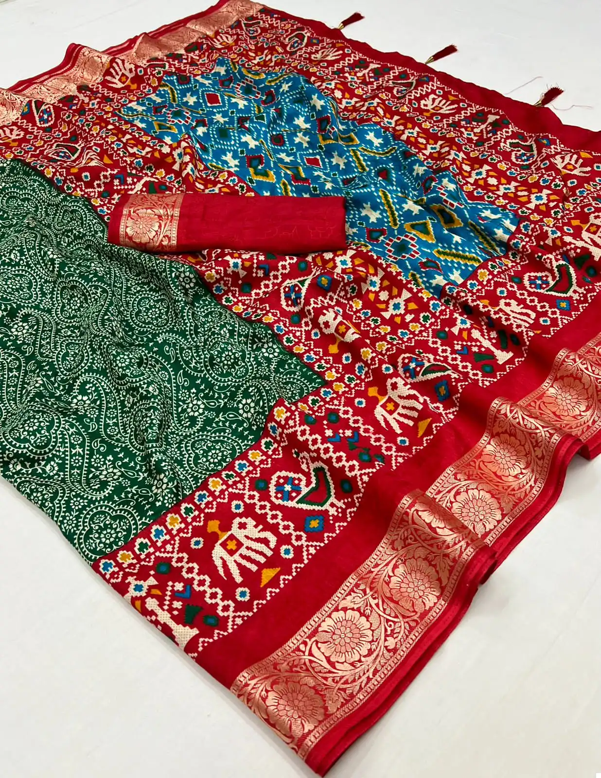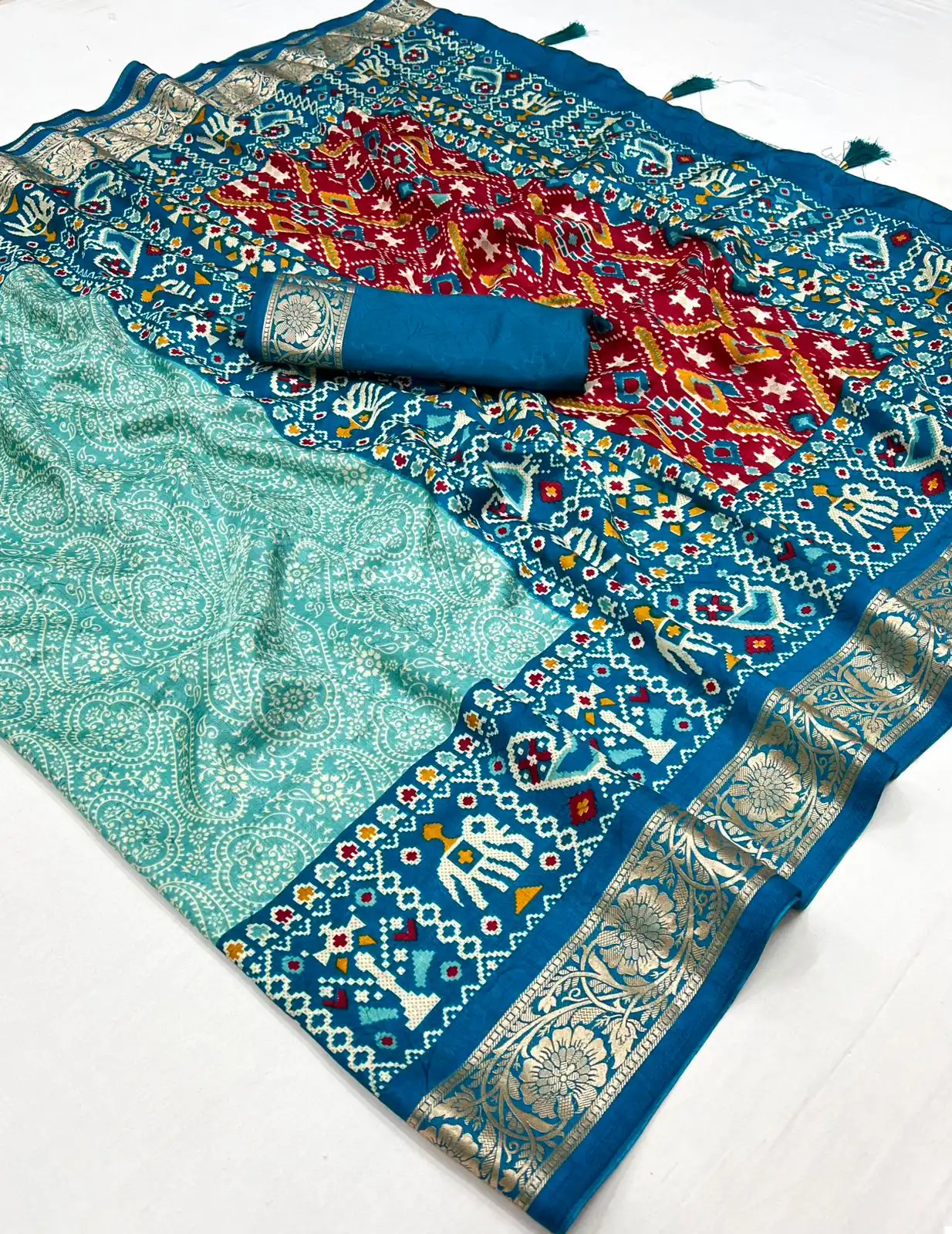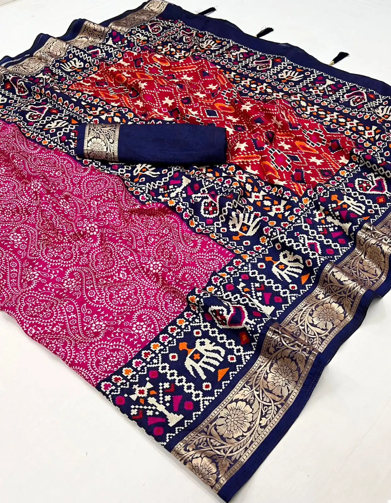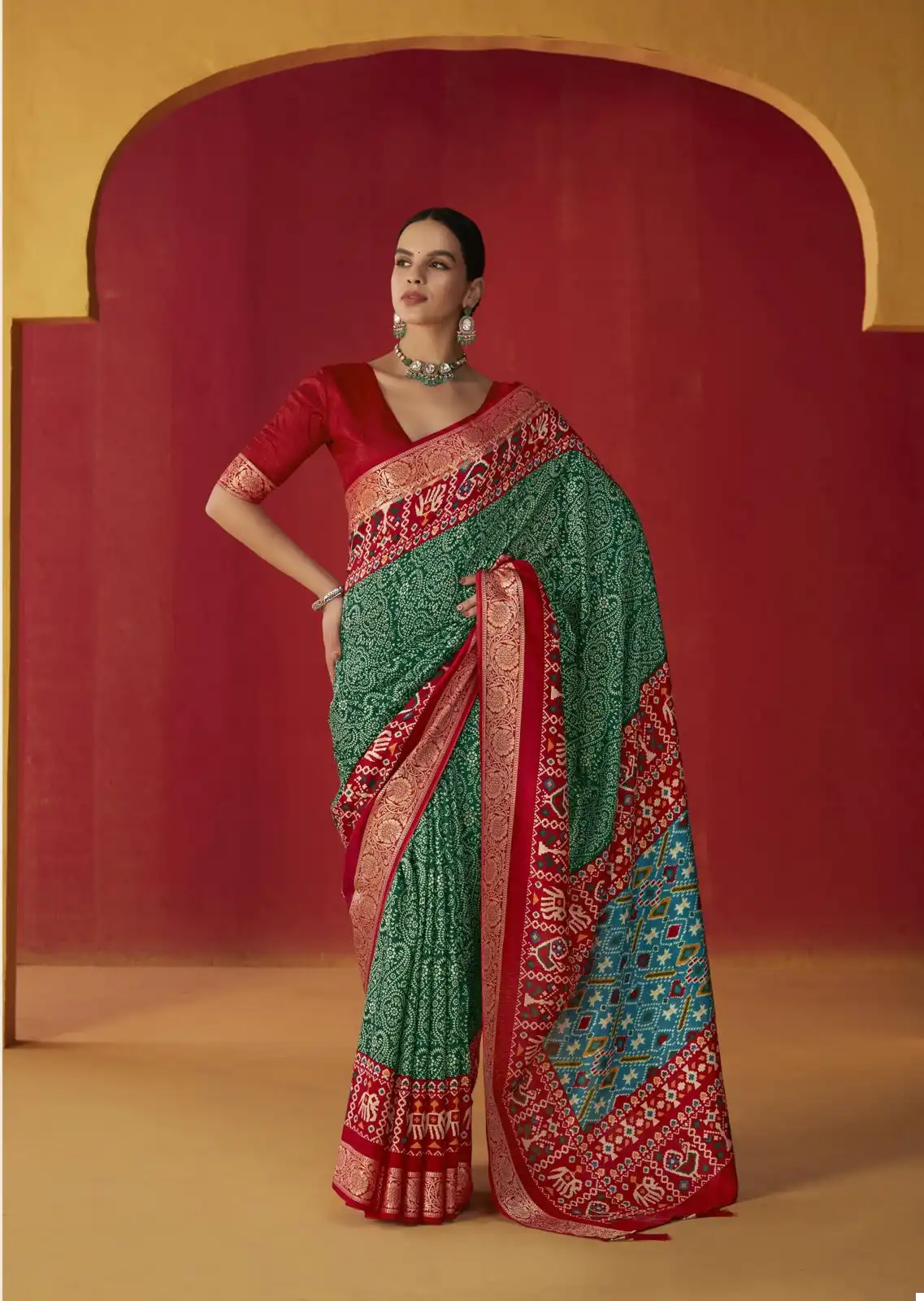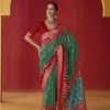 - Fabric: Silk. The blouse is made of silk fabric, complementing the richness of the saree.