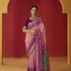 - Description: Self Zecard Design with Wiscos Zecard Border. The saree features a self zecard design, likely referring to a textured or woven pattern. Additionally, it has a wiscos zecard border, which adds embellishment and contrast to the saree.