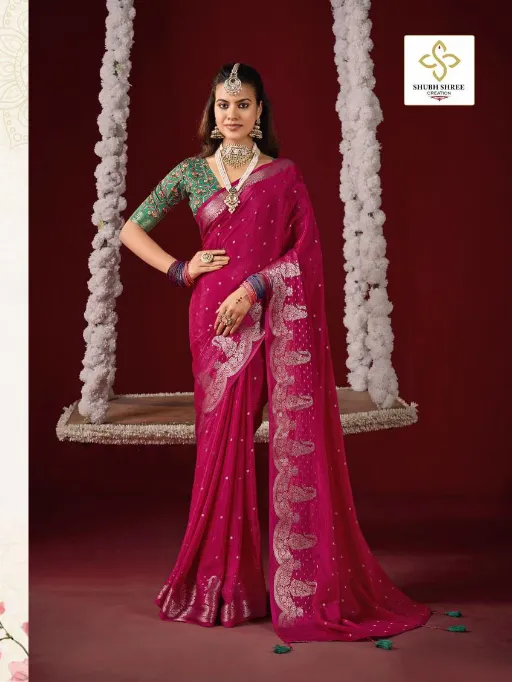 Shubh Shree Tarang Wholesale Chiffon Wedding Wear Saree Collection.