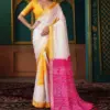 Saree: Russian Crepe With Viscose Jacquard Weaving Border And Bandhani Design ( 6.30 Mtr )