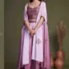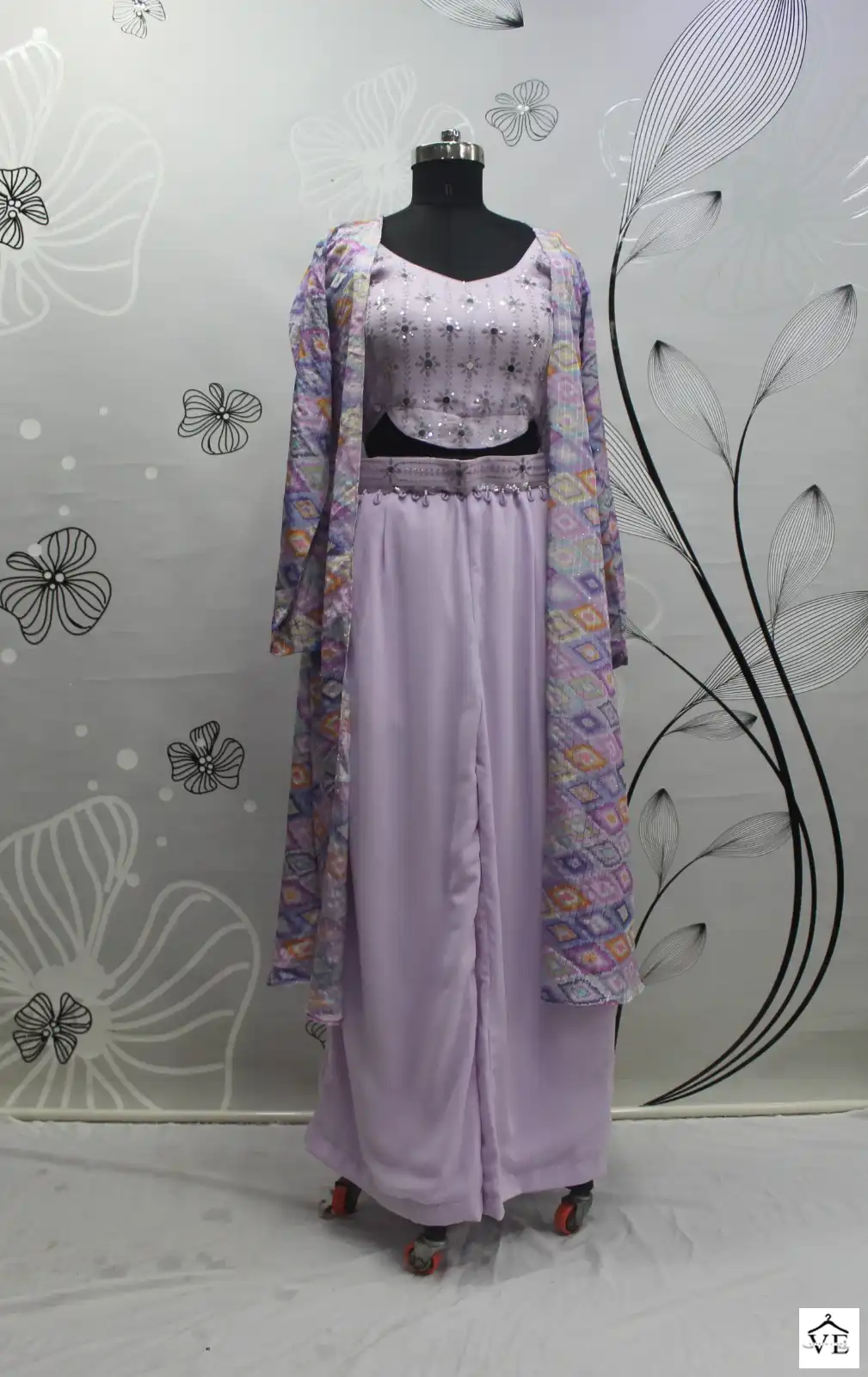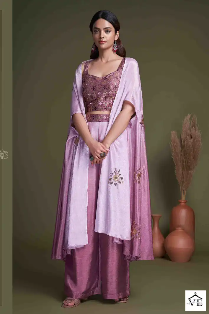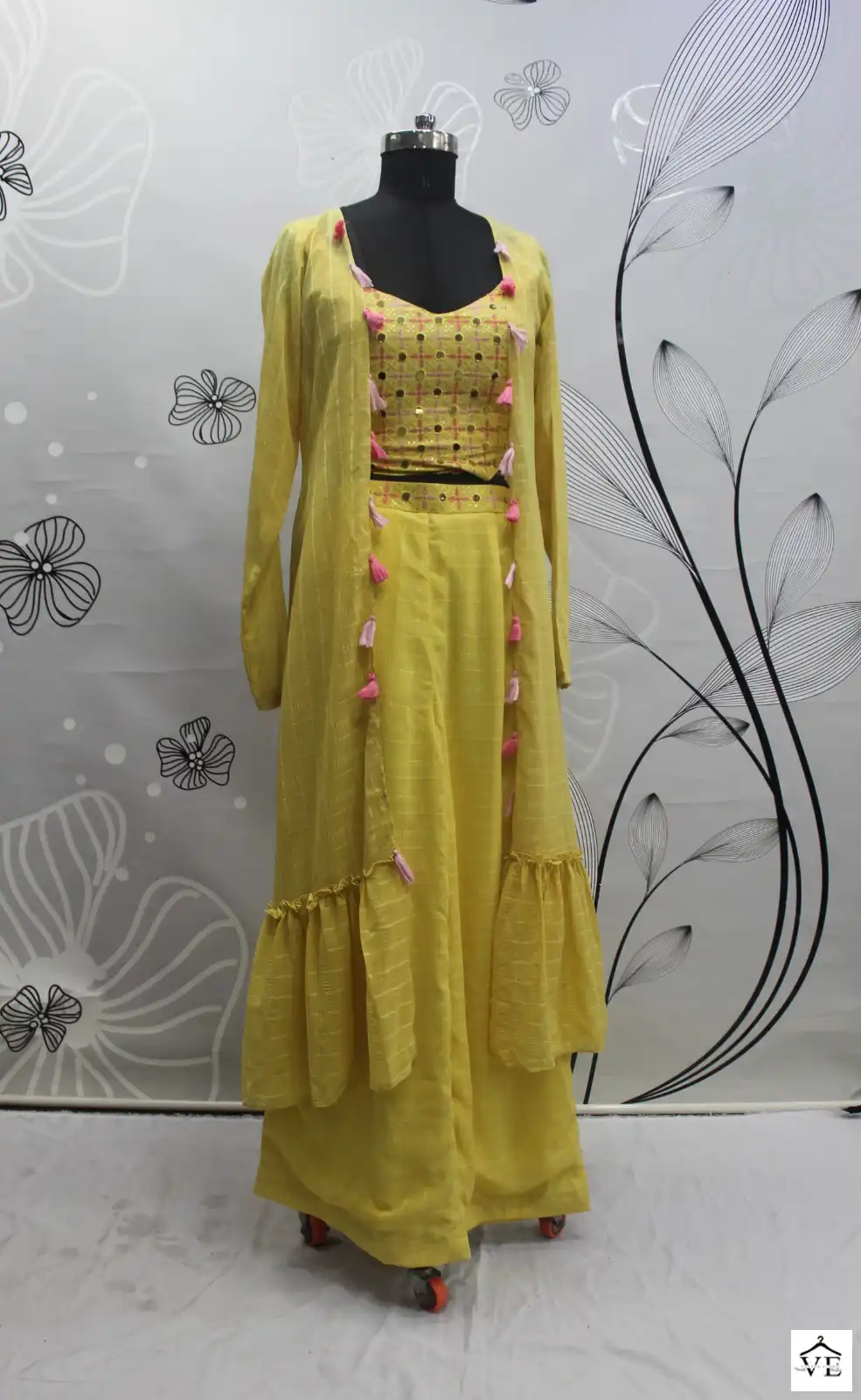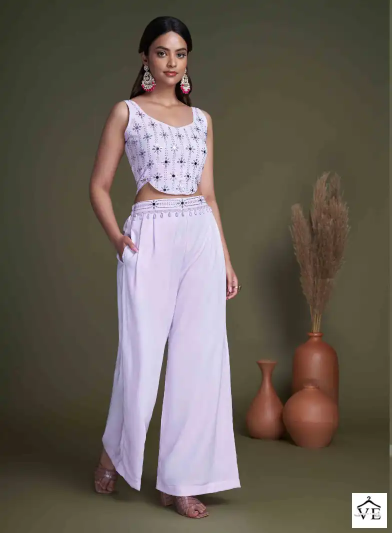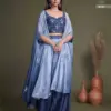 Georgette Silk And Chinon Embroidery Work With Mirror