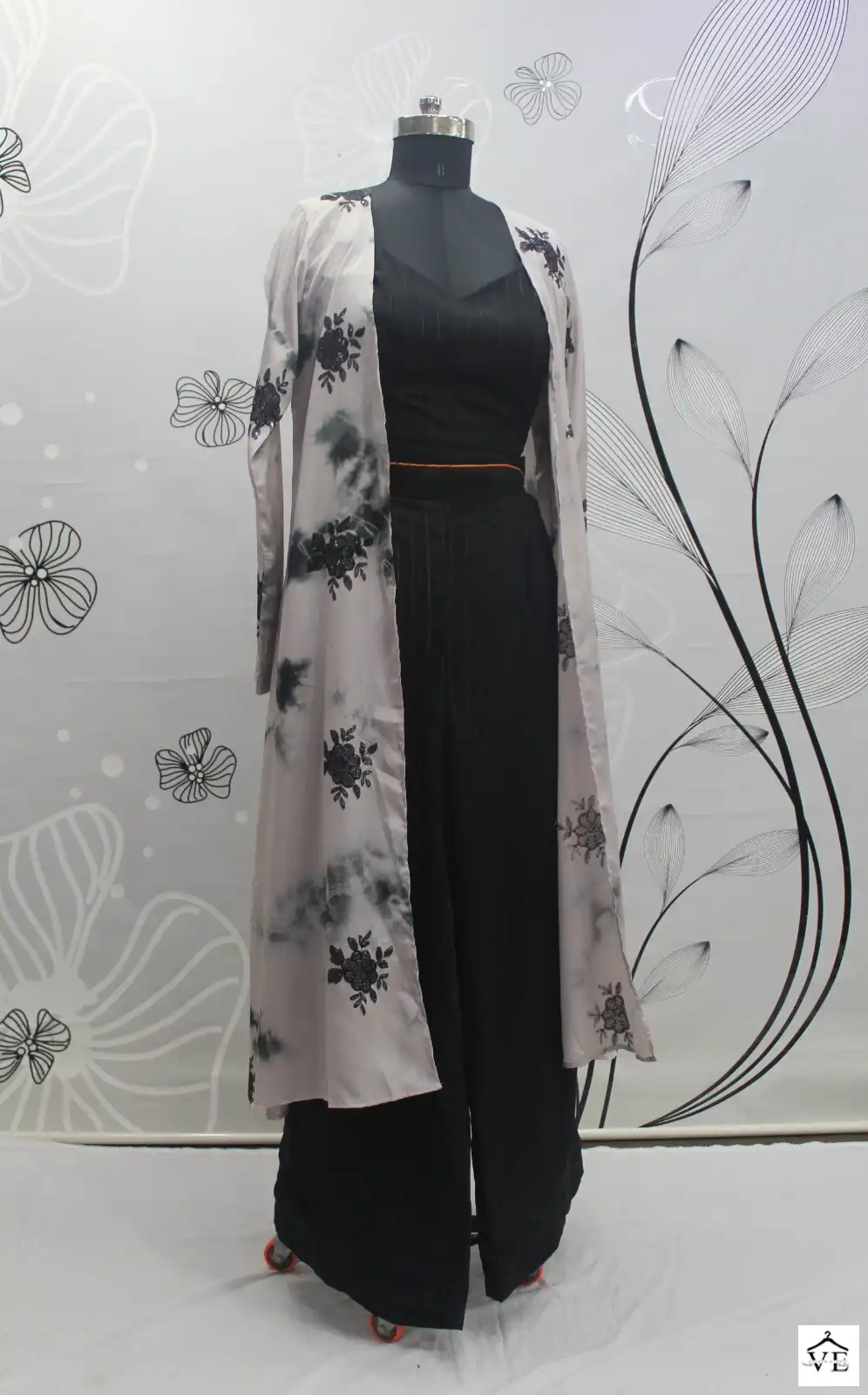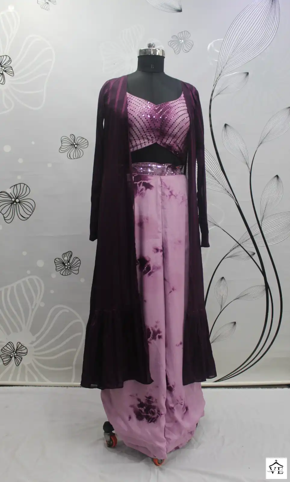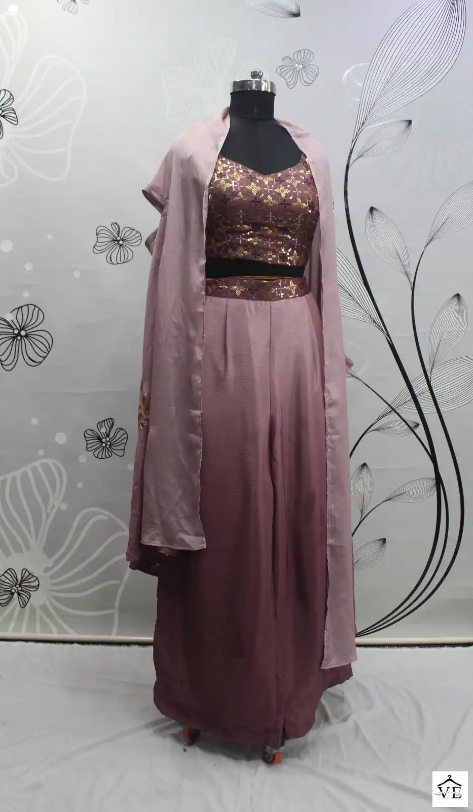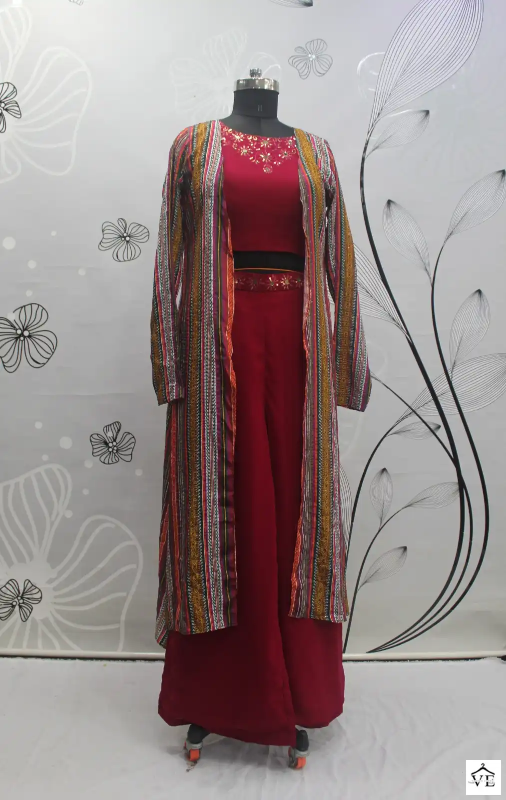 Georgette Silk And Chinon Embroidery Work With Mirror