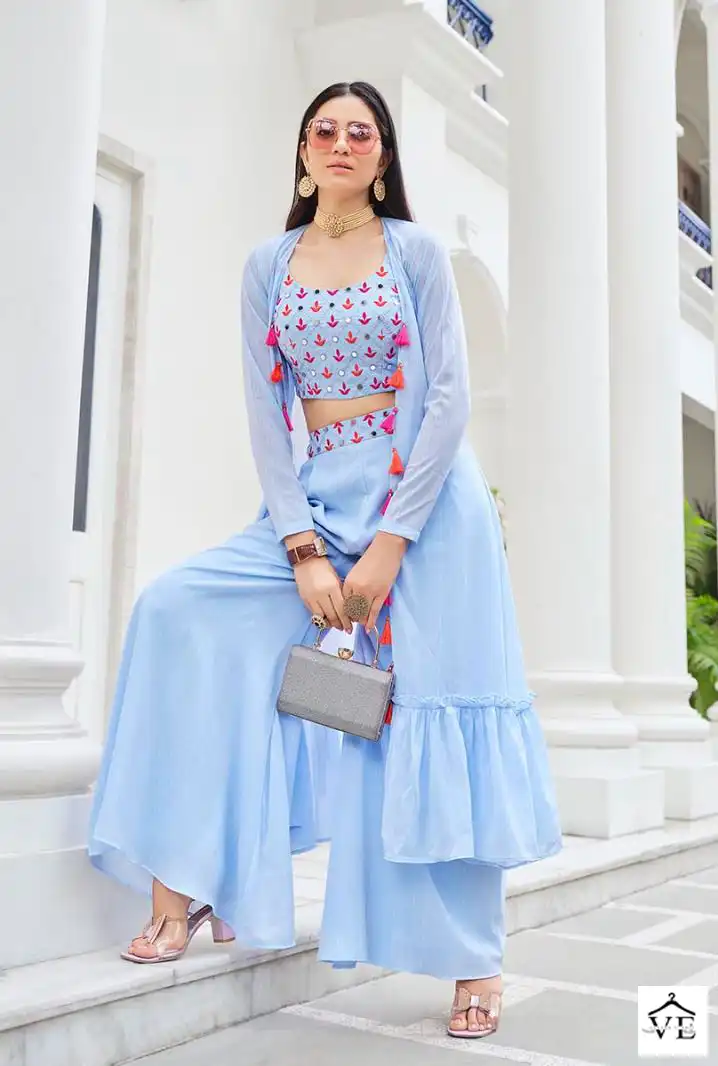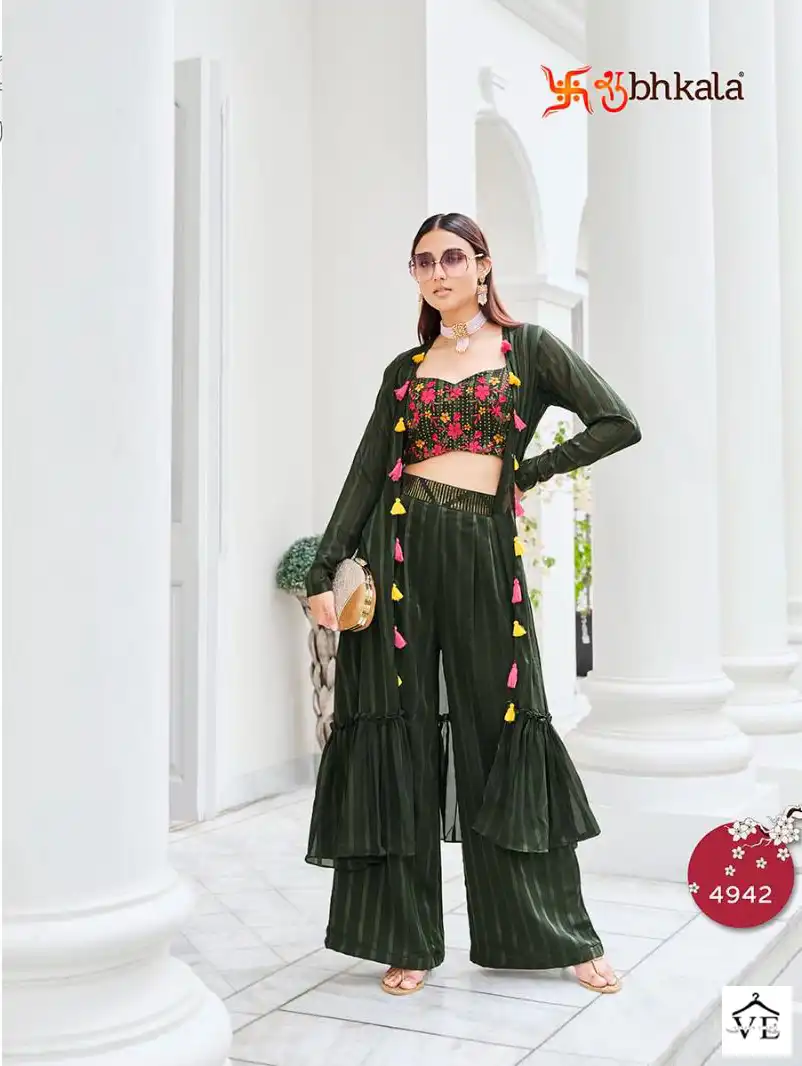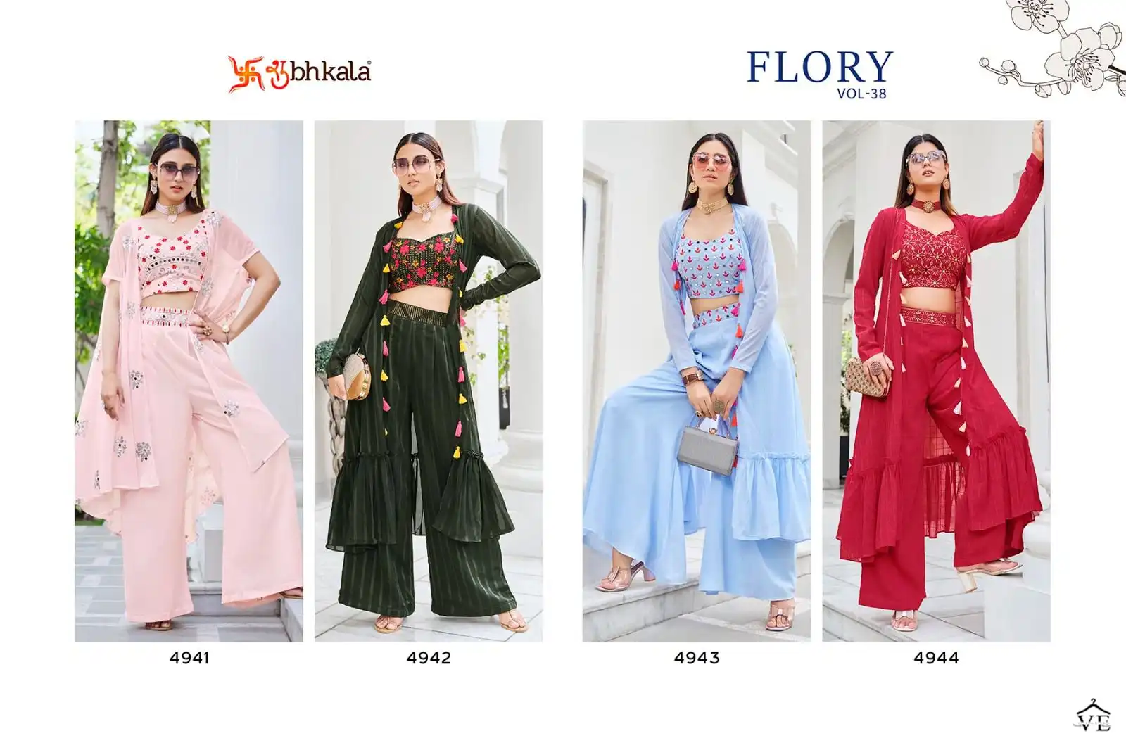Shubhkala Flory Vol 38 Georgette Wholesale Designer Top With Stylish Koti & Plazzo Sets Catalog 4 Pcs. We deal in Kurtis, Sarees, Dresses Materials, Leggings, and Designer Salwar Kameez.