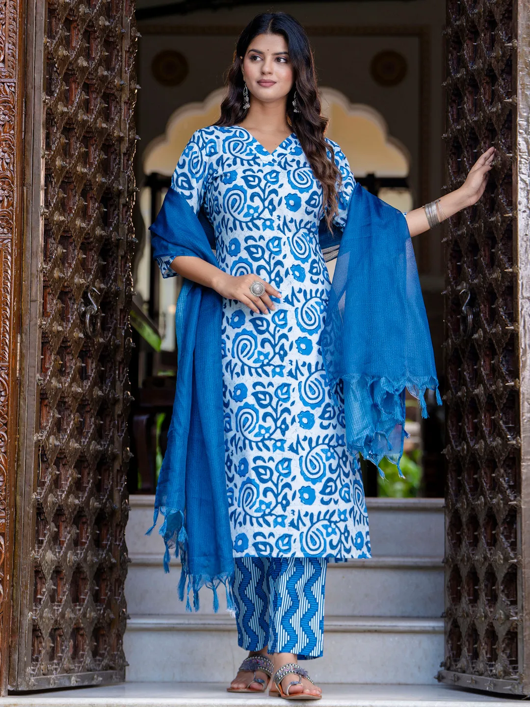| Dupatta | Kota Chex With Print and Tussle (Size Set: S To 2XL) |