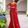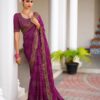 Elegant georgette saree designed with intricate embroidery border and stylish embroidered blouse. Perfect for festive and partywear styling.