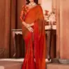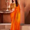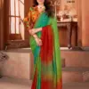 - Description: Handprint With Siroski Border. The saree features hand-printed designs, which adds uniqueness and authenticity. Additionally, it has a Siroski border, which may be adorned with crystals or rhinestones for added sparkle and elegance.