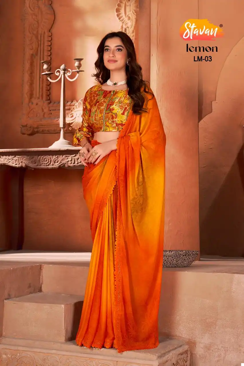 Stavan Lemon Handprint In Dull Moss Wholesale Fancy Sarees Catalog