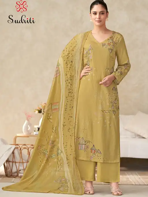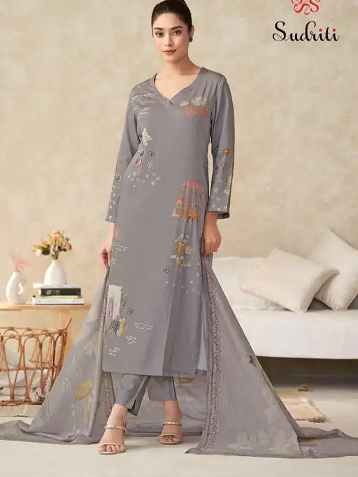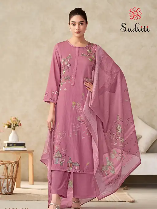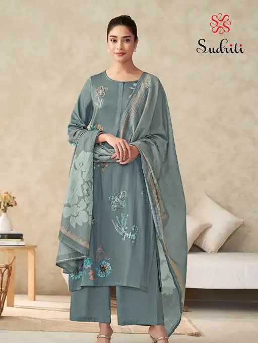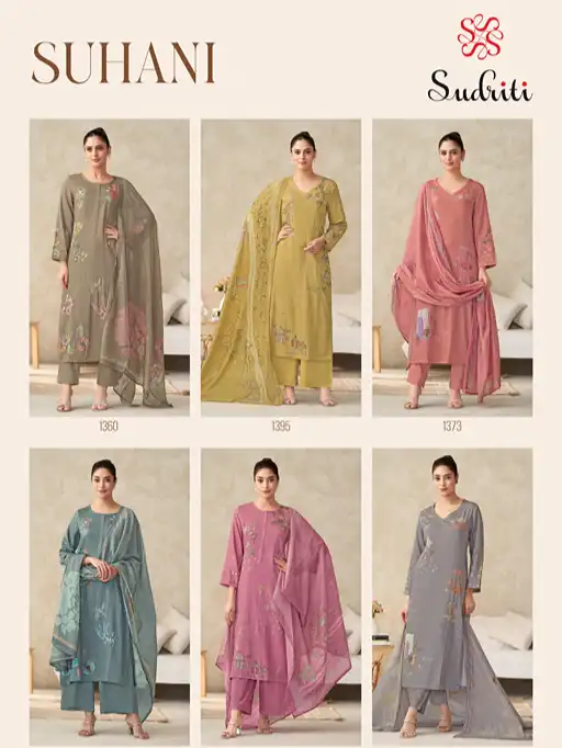 Sudriti Suhani Wholesale Italian Satin Printed Handwork Salwar Suit Catalog.