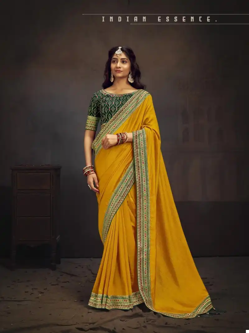 - Saree: Vichitra blooming with heavy border and embroidery work.