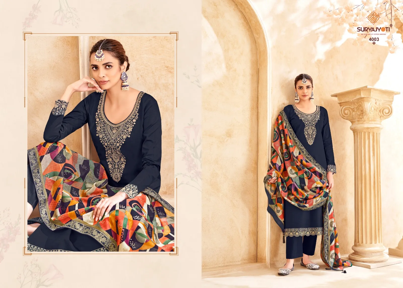 Suryajyoti Pashan Vol 4 Jaam Satin Wholesale Designer Salwar Suit Collection