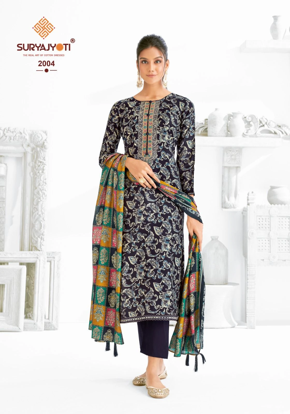 Product Title: “Set of 6 Pure Modal Salwar Suits with Foil Print, Neck Embroidery, and Tasselled Dupatta”