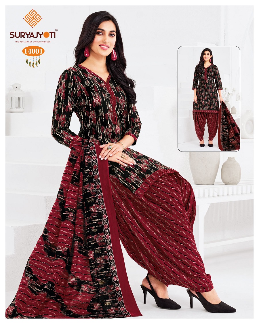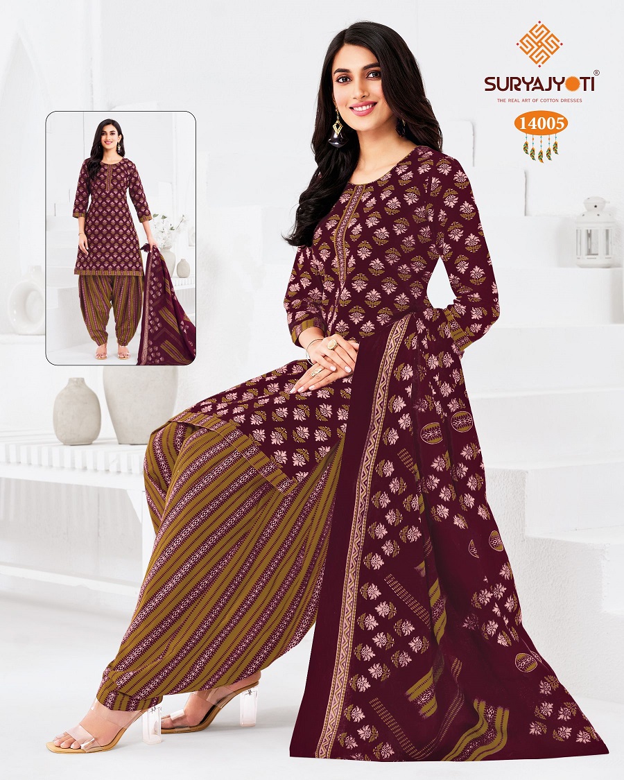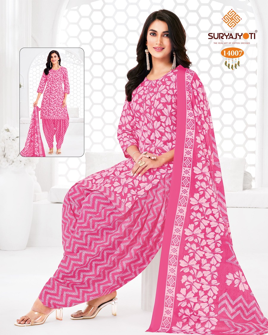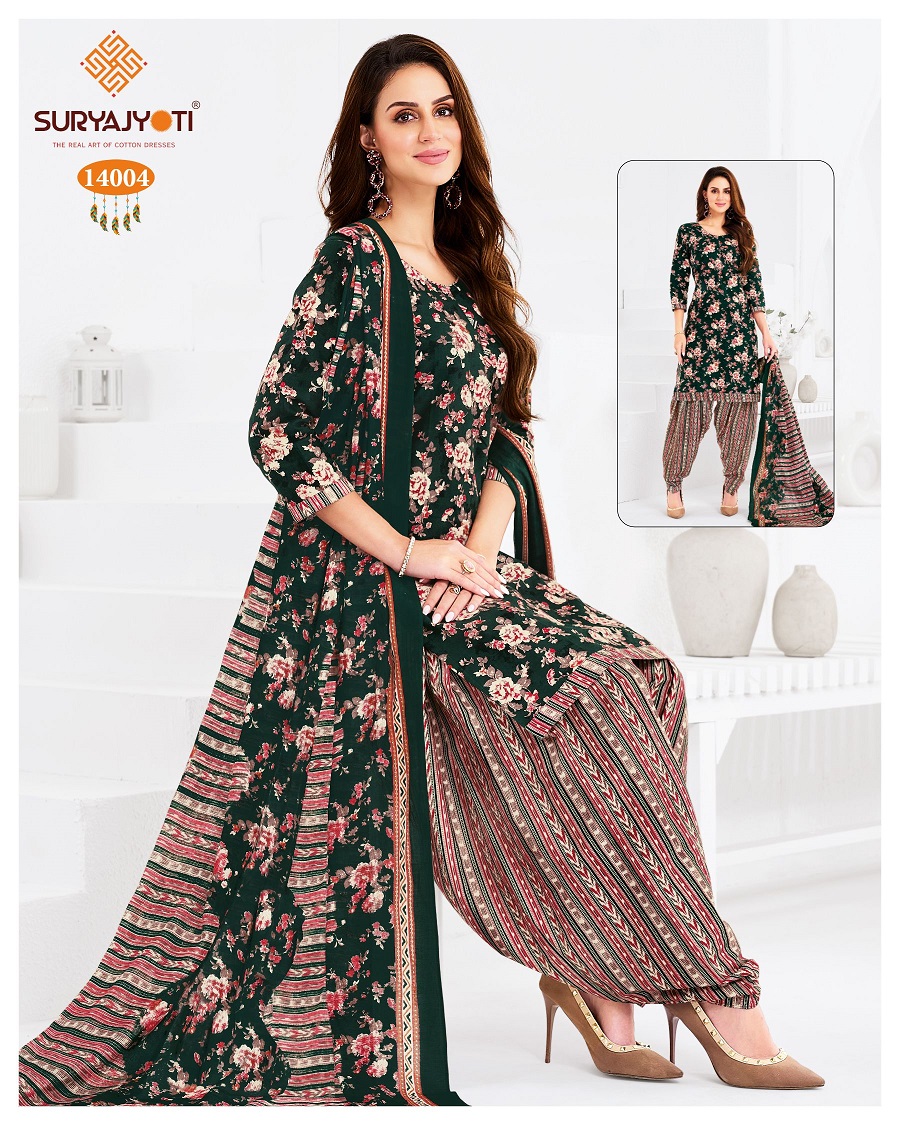 | Suryajyoti Trendy Patiyala Vol-14 Cotton Wholesale Fancy Dress Material Catalog |