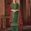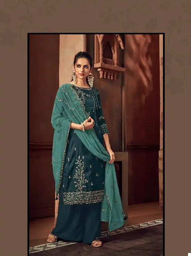 - Fabric: The top is made of Rass Silk, known for its smooth texture and luxurious feel, ensuring a sophisticated look for any occasion. The bottom features heavy Santoon fabric with a matching inner lining, providing comfort and ease of movement. The dupatta is crafted from heavy organza, adding a touch of opulence to the outfit.