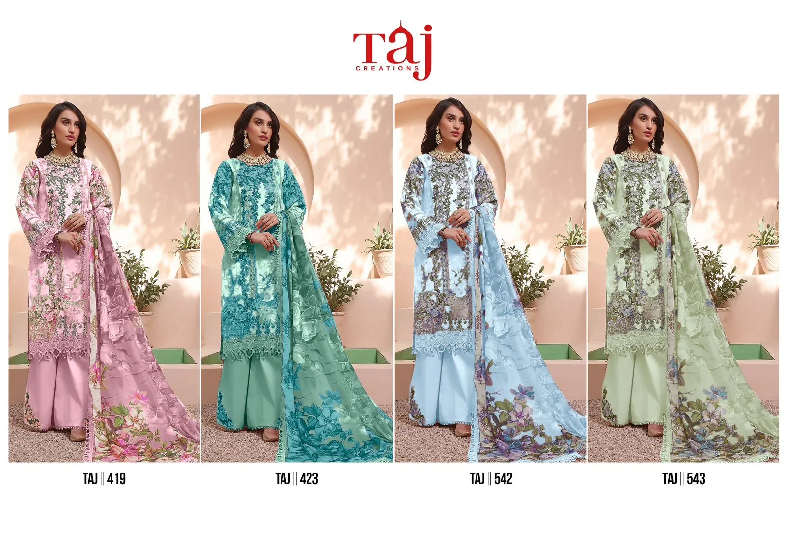 Taj Firdous Queens Court Cotton Wholesale Pakistani Salwar Suit Catalog