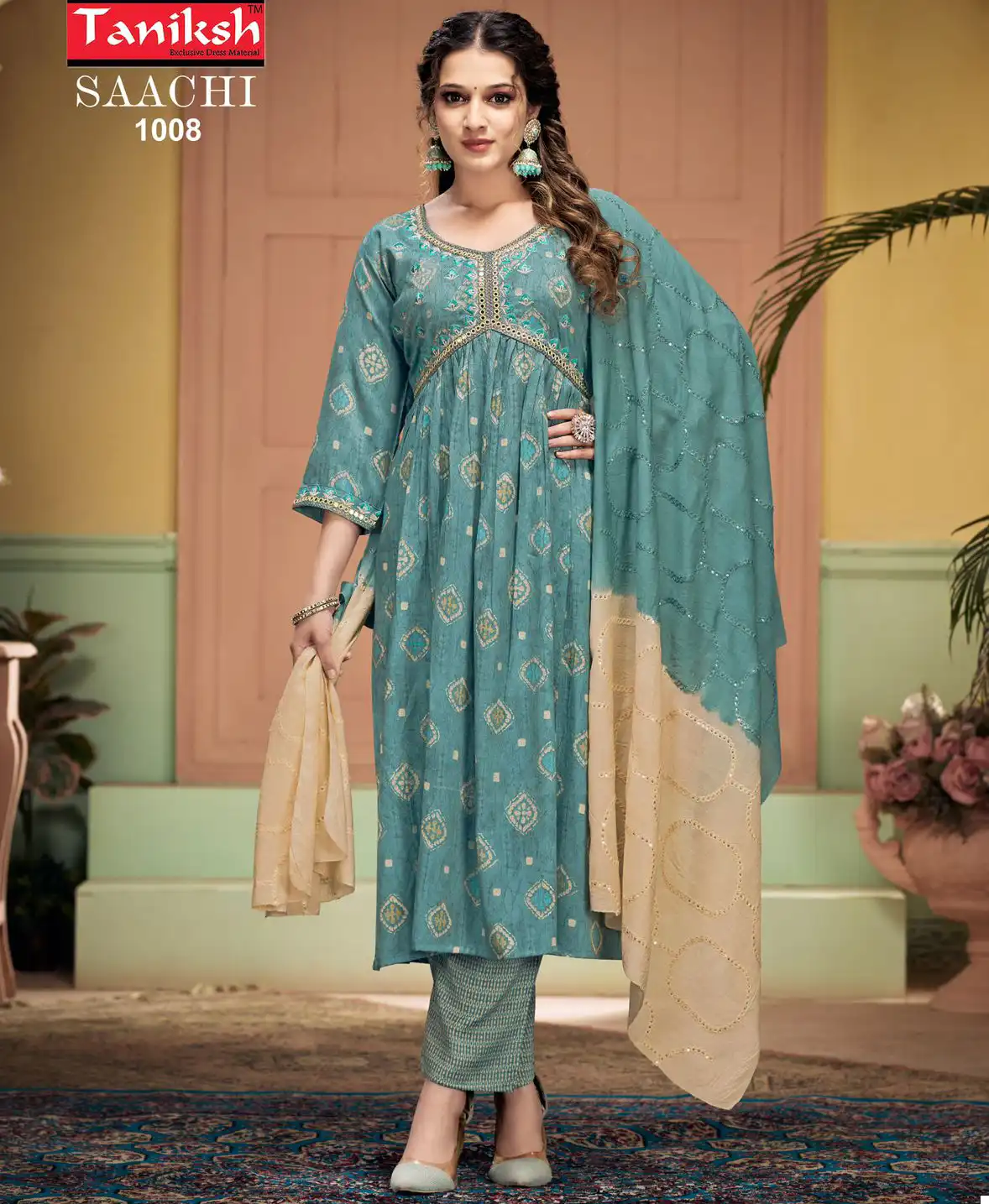 - Fabric: Experience the luxury of Rayon Capsule fabric adorned with captivating foil prints on the top. The intricate embroidery work adds a touch of sophistication, while the Rayon Capsule Pent bottom ensures comfort and style. Complete your ensemble with the fancy dupatta featuring exquisite workmanship.