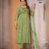 - Dupatta: Chiffon – The scarf or dupatta accompanying the outfit is made of chiffon fabric.