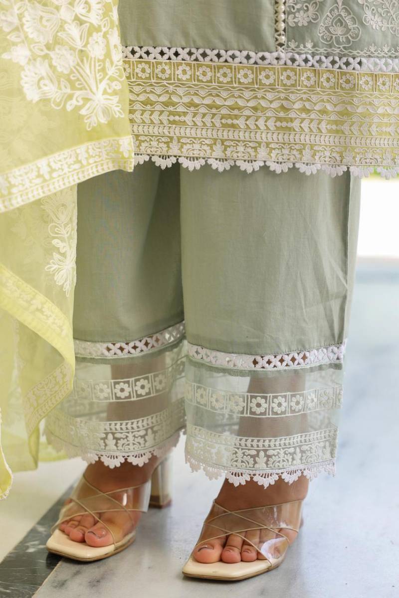 Redefine your ethnic elegance with this exquisite cotton suit collection featuring rich detailing and timeless craftsmanship. Each set includes a soft, breathable cotton top with intricate pearl work borders, paired with a matching cotton bottom with border detailing, and finished with a luxurious organza dupatta adorned with delicate Lakhnavi embroidery.
